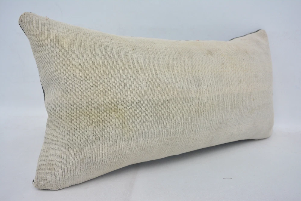 Body Pillow, Pillow for Sofa, 12"x24" Beige Pillow, Kilim Pillow