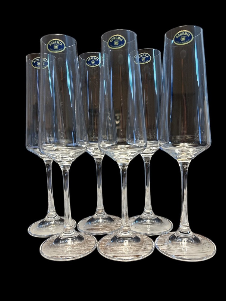 Bohemia Crystal Corvus Collection Champagne Flute 6pk NIB 5oz