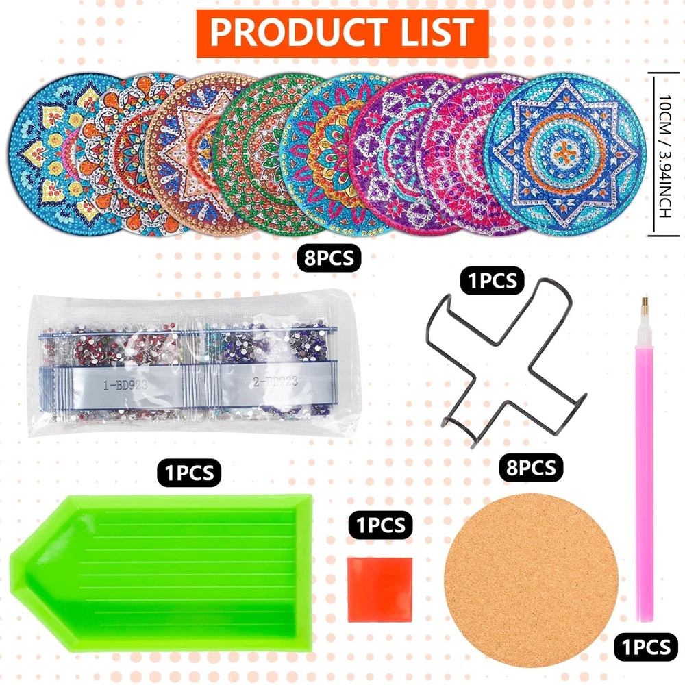 Bohemian Diamond Art Coasters Kits, 8 Pcs Diamond Painting Coasters with Holder Set, DIY Diamond Craft Supplies Coasters for Drinks, Diamond Art Kits for Adults Diamond Art Bohemian Kits - The DIY glittering Bohemian diamond painting coasters set is full of color and does not fade. Great diamond pattern design, great for home, kitchen, living room, bar, hotel, restaurants Bohemian Diamond Painting Coasters - You will receive 8 different designs diamond painting coasters, 8 adhesive cork bases, 1 coaster holder, 1 diamond painting pen, 1 diamond tray, 1 clay glue, and diamonds Enjoy Diamond Art Joy - Creating Bohemian diamond painting coasters fosters confidence and patience, when you focus on finishing these craft projects, improving practical operation ability and relieving stress, also fine for diamond art clubs, home DIY crafts and more Diamond Art Kits for Beginners - Our Bohemian diamond painting coasters feature clearly marked numbers that correspond to the diamonds in each bag, making it easy for even beginners to create beautiful diamond art coasters with confidence Perfect Gift Idea - When you have friends visiting your home or attending a party, you can work with them to complete this handicraft. After completion, You will get a full sense of accomplishment. you can use the coasters on the dining table , can be used as a collection of handicrafts or as a souvenir for friends Shipping We offer FREE shipping on all orders! We ship within Three business days of payment, usually sooner. We use a selection of shipping services such as UPS, FedEx, USPS etc. We only ship to the lower 48 states, no APO/FPO addresses or PO Boxes allowed. Local pickups and combined shipping options are not provided at this time. Return You can return a product for up to 30 days from the date you purchased it. Any product you return must be in the same condition you received it and in the original packaging. Please keep the receipt. Feedback Customer satisfaction is very important to us. If you have any problem with your order, please contact us and we will do our best to make you satisfied. Contact Us If you have any queries, please contact us via ebay. We usually respond within 24 hours on weekdays. Please visit our eBay store to check out other items for sale! Thank you for shopping at our store.