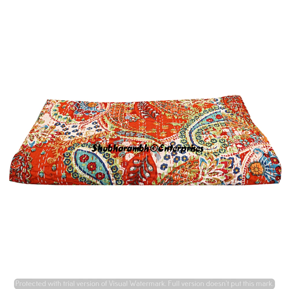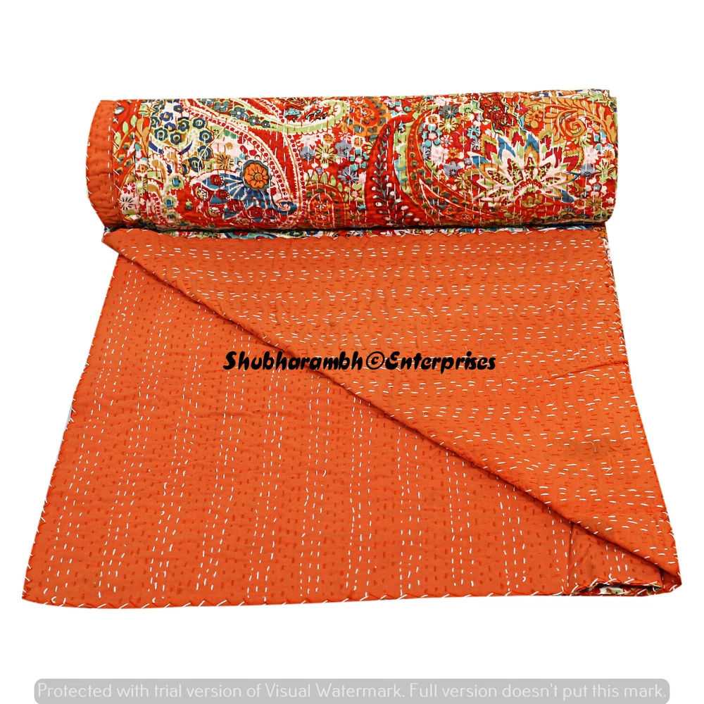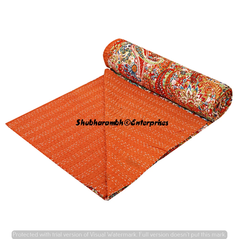 Product Details : Item - 1 PC Indian Cotton Kantha Quilt Fabric - 100% Cotton Fabric. Dimension - 90'' x 108" Inch (228 x 274 Cm) Colour - As Show in image Wash Care - Machine Washable . Product Description: Indian Cotton fabric Hand Kantha Quilted Queen Size Quilt, Blanket / Bedspread These Hippie Kantha quilt is made by two layer cotton fabric. These Kantha quilt is made by most of valuable hand art to give a unique Kantha pattern. Front side always Screen printed with kantha Work and back side always solid pattern. Payment policy: We accept the payment by pay pal. International buyers are responsible for their countries duties and taxes. Shipping Policy: We ship The Item Worldwide By FEDEX , UPS and by BOMBINO services. Feedback: Our aim is 100% buyer satisfaction. If you are pleased to our service so give a positive feedback.