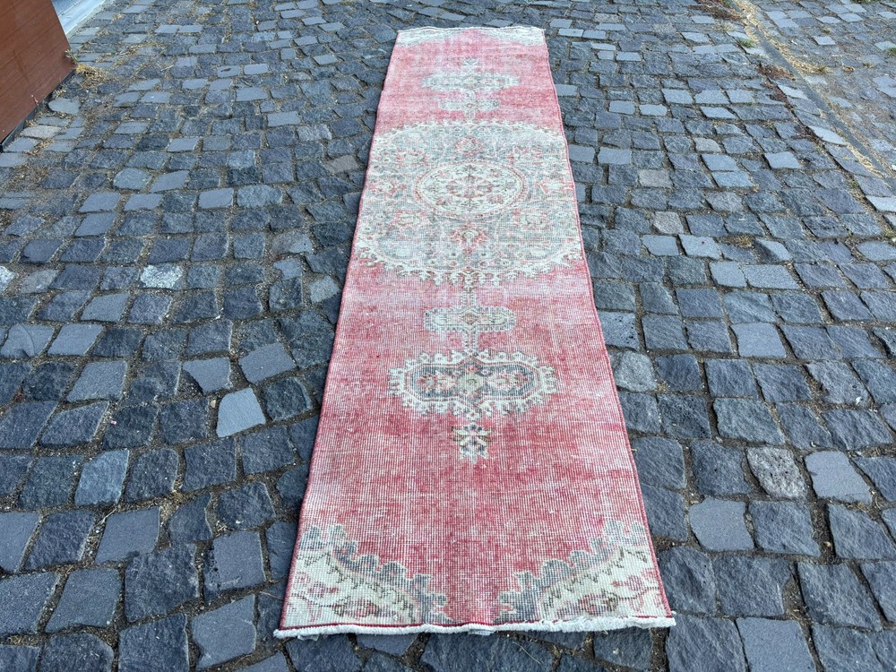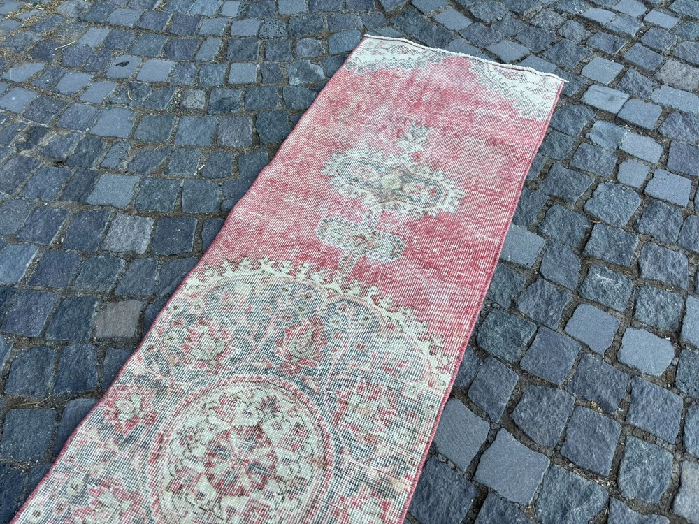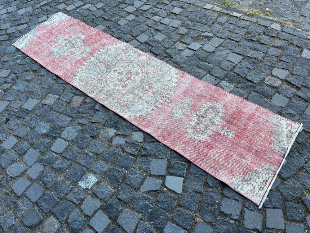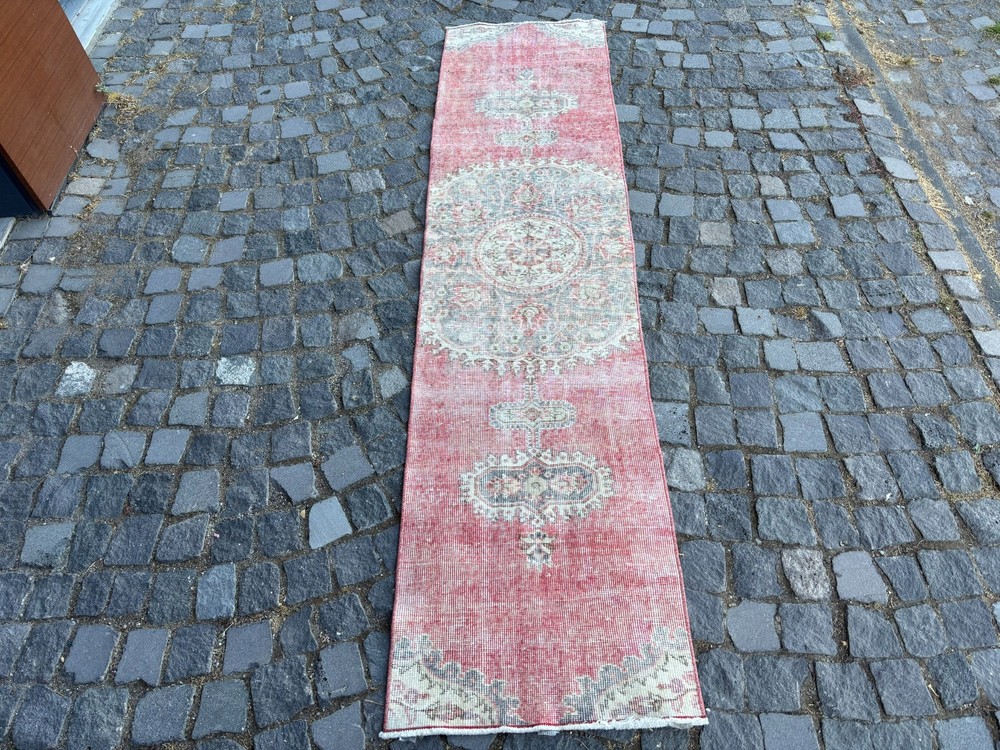An old (approximately 45-60 years old) hand knotted / hand woven Turkish rug from the Middle Anatolian Region and made of genuine, high quality wool, in natural colors. Our distinguished Antiques and Vintage rugs, each with its own unique story, have been carefully selected from every corner of Turkey. RUG DETAILS * One-of-a-kind vintage rug * Dimensions: 2,0 x 8,6 ft = 25 x 103 inc = 63 x 263 cm * Low pile: approximately 0.2"(0.5 cm) * Dyed with natural dyes * Product code : RR 1863 SHIPPING * Free shipping on all items. * Usually shipped via FedEx or UPS. * Item will be ready for shipment within * Estimated delivery 3-5 business days 1-3 business days with a tracking number. All of our rugs have been professionally cleaned and ready to ship before being listed. These unique vintage rugs have normal wear related to their age. We believe this adds to the authenticity of these hand-woven beauties. We inspect all rugs carefully before Shipping, but in the unlikely event that due to our fault, the goods are not fit for purpose, damaged/defective, or we ship the wrong item, we will issue a 100% refund. We are a team of experienced professionals who are dedicated to ensuring your items arrive safely. Please note that our photos accurately represent the colors of the rug, however it may look different in the light in your home or against different colored floors. We are so excited to share the beauty and art of rugs with you and to see how your personal spaces transform! I do my best to build a great experience in online rug shopping for you, just look at the reviews. Please feel free to write me over conversation if you have any questions about the rug or price. I will be happy to answer to you. Thank you, Yusuf.