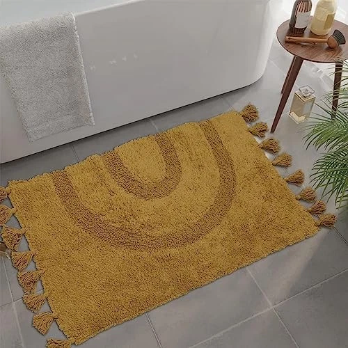 Love this boho bath mat! The soft cotton feels amazing underfoot, and the tassels add such a fun, stylish touch. It dries quickly and the non-slip backing keeps it securely in place. Perfect for adding a cozy, bohemian vibe to my bathroom while keeping my feet warm. Fast shipping and great quality—highly recommend!