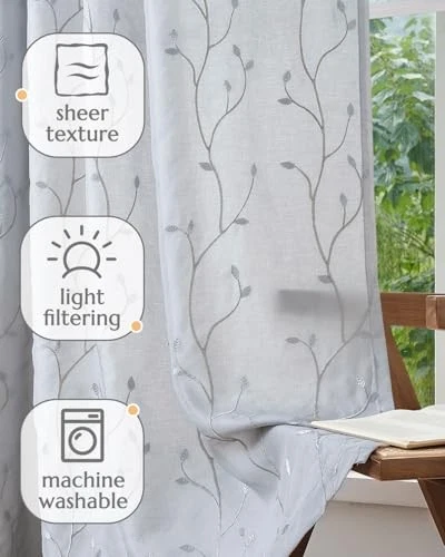 Return Policy Fast Delivery Trusted seller Boho Lined Sheer Curtains Floral Embroidered Sheers for Bedroom 63 Inch Length Embroidery Voile Leaf Drapes for Living Room Light Filtering Privacy Window Curtains 2 Panels Grey Product Description Embroidered Sheers Curtains: Celebrate the change of seasons with sheer curtains; Package includes 2 panels in 55 inch wide by 63 inch long each, 110 by 63 combined; Linen, embroidery and voile in perfect combination, these crude window curtains soften up your home with a romantic farmhouse look Lined Voile Curtains: Featuring a lined texture that has a soft touch and lovely drape, these crude sheers frame your windows with a light and airy aesthetic; The open weave fabric provides sufficient privacy from outsiders with a pleasant ambient glow, but you won't lose sight of the outside Home Decoration: These elegantly crafted curtains allow natural light to filter into a room, yet will transform your decor at the same time; Allowing light to filter through while offering a sense of privacy; Sheer voile window treatments look great in multistyle of home, be it traditional or modern farmhouse, offering a lightweight, airy feeling that softens the ambien of a room Style It Your Way: These embroidery sheer curtains have a natural linen texture that can blend into any space without overtaking it; They can be installed in the living room, bedroom, sunroom, office, dining room and kitchen for everyday use, or can serve as a backdrop for special occasions Easy Maintenance: These voile sheers curtains can withstand tear and wear thanks to the durable material; They are also easy to maintain; The folding line can be removed with iron or steam in low heat; Machine wash in cold water with no bleach; Wash with similar colors; Tumble dry in low setting Shipping Returns Payment Shipping Shipping is FREE to all addresses other than APO/PO boxes in the lower 48 states. All our stock ships from US-based warehouses. Shipped via USPS or UPS (depending on location and package weight) Unless stated otherwise, all orders will ship within 24-72 hours of your payment being processed. Check our feedback to see the great reviews of FAST shipping we offer. Returns Seller does not accept returns Payment We currently accept payment via eBay managed payments only. Once payment is cleared, we will dispatch your shipment within 1-3 business days. Please refer to the "Shipping" tab for more information regarding shipping speed to your destination.