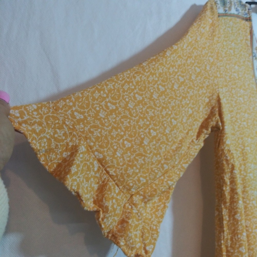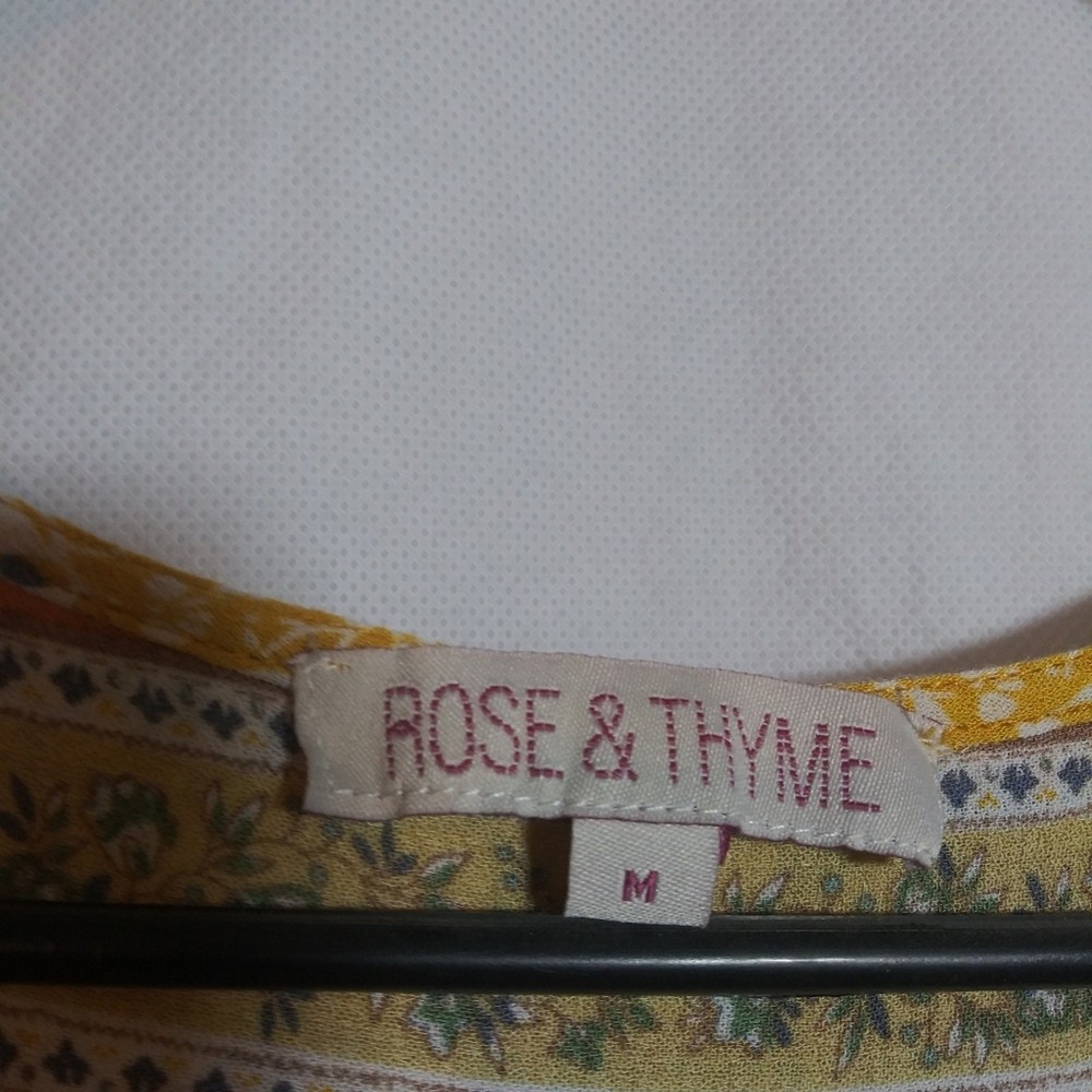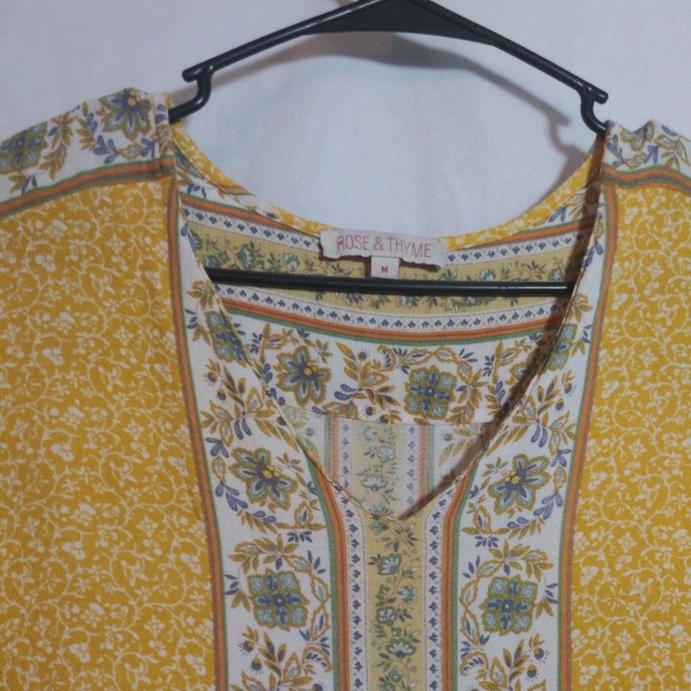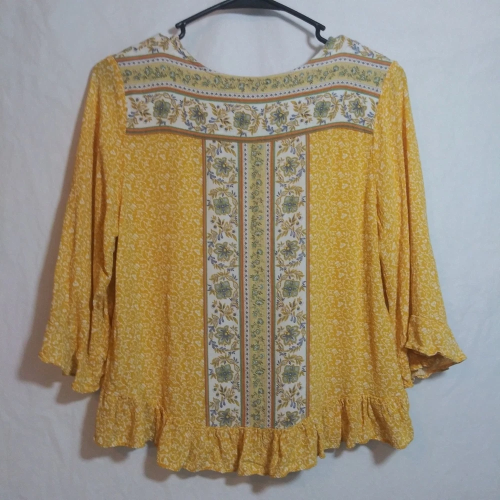 Rose & Thyme Yellow Floral Boho Peasant 3/4 Sleeve Women's Top Size M Brighten your wardrobe with this charming yellow floral top. Perfect for any casual outing. 3/4 sleeve V neck Lightweight Gently worn light wash wear approximate measurements pit to pit 18" length 21"