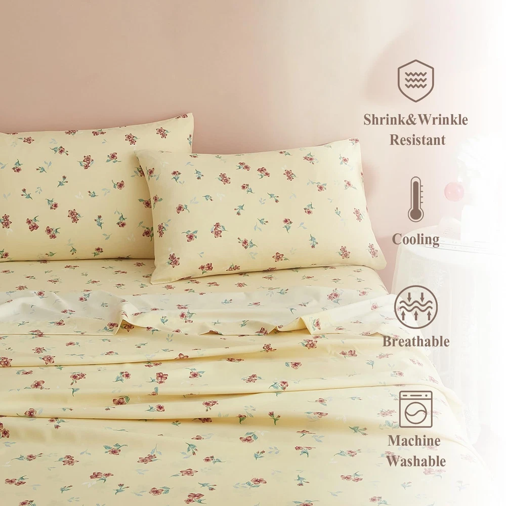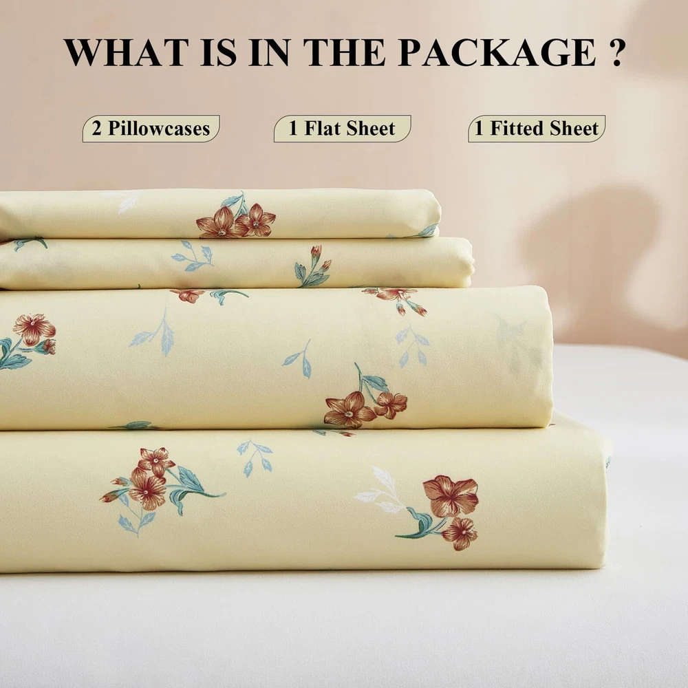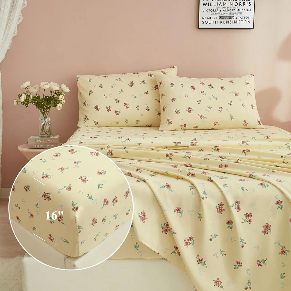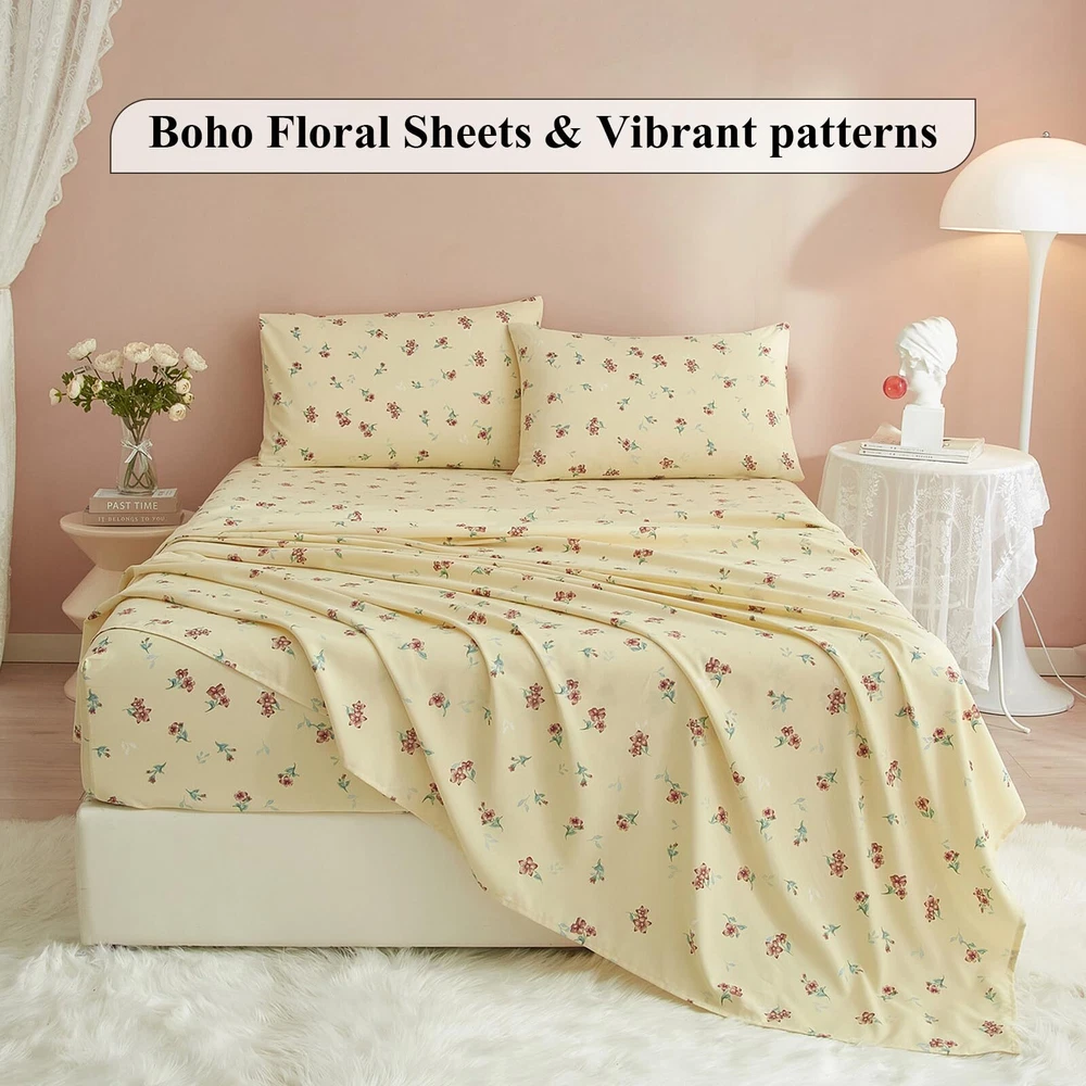 Super soft floral sheet sets,breathable,lightweight,durable EXTRA FIT - floral sheet set was made of 100% washed microfiber material,which offers strength and durability with exceptional softness.Experience the ultimate comfort and soft touch with our bed sheets, sleep better and wake up each morning feeling refreshed,this washed microfiber sheets is stronger than cotton with ultra-tight knit,these luxury floral bed sheets won't rip or tear after washing.keep you cool,comfortable,and breathable in all seasons. 4 PIECE SHEET SET - Extra Soft Queen Size Bed Sheets Set 4 Piece - 1 flat sheet 90"x102", 1 fitted sheet 60"x80"x16",2 pillowcases 20"x30".Extra Deep pockets that fit mattresses up to 16" deep with elastic around the fitted sheet.The all-around elastic on our fitted sheets will cover your deep luxurious mattress and any toppers easily, no matter how much you toss and turn. SOFT BED SHEETS - Ultra Soft Luxury Boho Floral Bed Sheets is Best for Bedroom,Guest Room,Kids Room, RV, vacation home,College Dorm.Bedding Collection for Women,Men,Teens,Boys,Girls,Toddlers,Nursery,Friend,Son,Daughter,Family EASY CARE - Queen sheets set is machine washable.Wash on a gentle cycle with cold water,tumble-dry them on low heat.Quick ironing or steam clean when needed.Visiting the store, find out your favorite bedding sets. FLORAL SHEETS - 4 Piece Sheet & Pillowcase Sets decorate your home,if you don't love your queen size bed sheets,please feel free to contact us