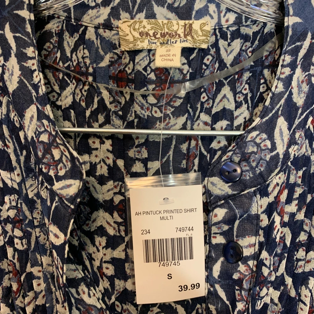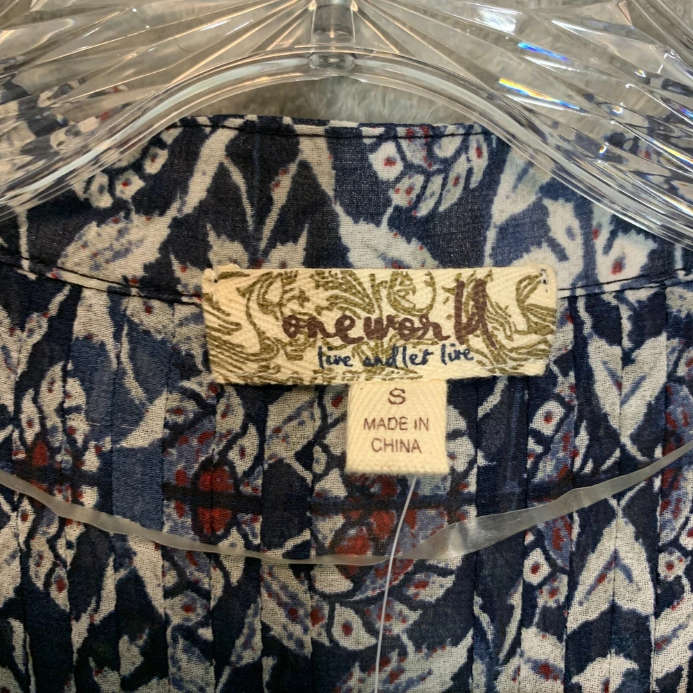 Great condition. New with tags. Please see photos for details. SUPER FAST SHIPPING!!! We ship next business day! If you aren't happy with your purchase we offer 30 day FREE returns. No questions asked! One World Women Boho Hippie Pintuck Roll Tab Chiffon Tie Back Button Front S NWT