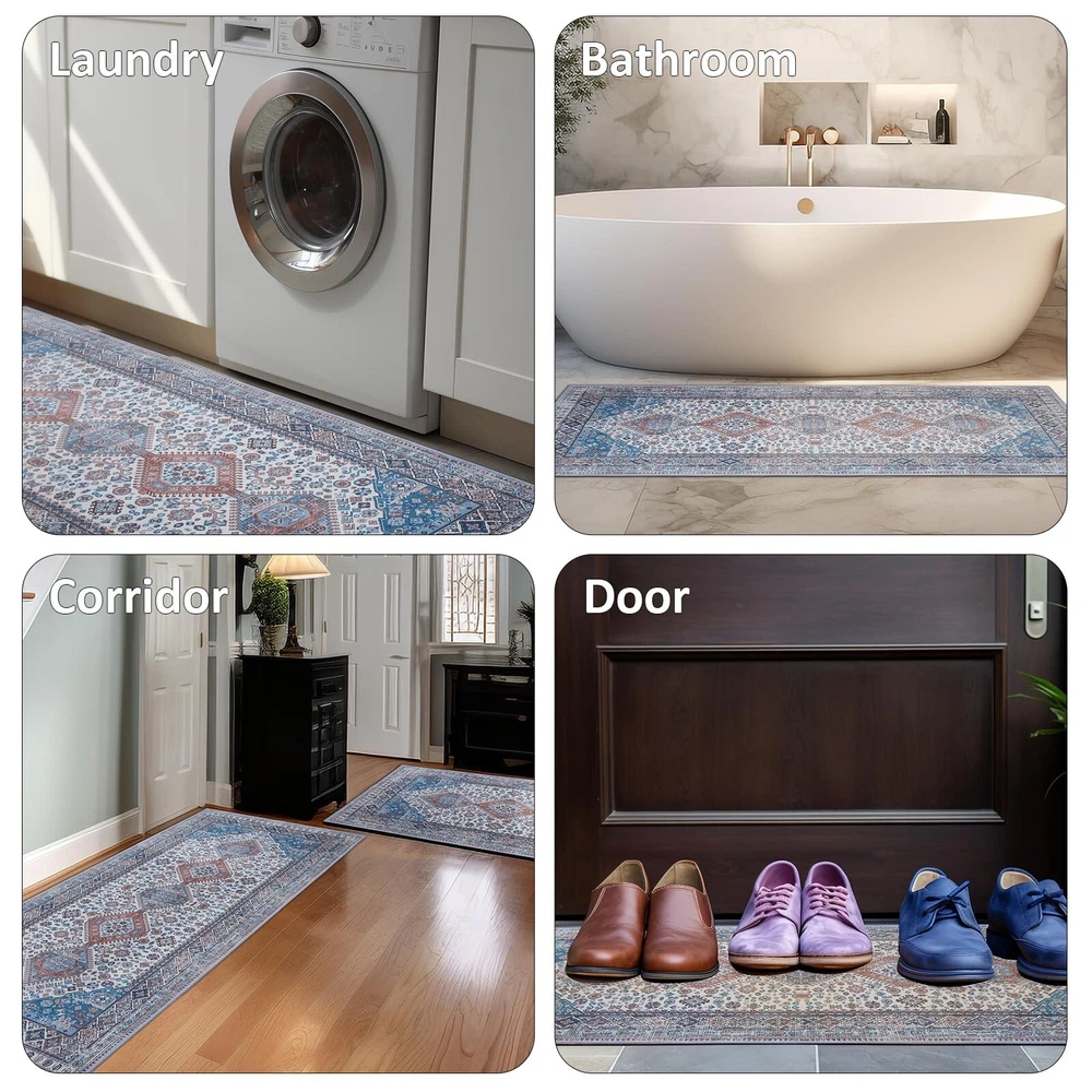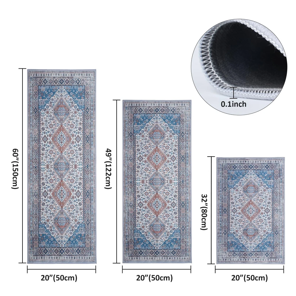 Boho Kitchen Rug Mat 3 Piece Farmhouse Rugs and Runners Non Slip Washable Floor Carpets for Entryway Hallway Laundry Living Room(B-r-Grayish) Product Details Color: Blue-red-grayis Brand: Ferites MPN: kitchen mat- father UPC: 653998349349 EAN: 0653998349349 Brand: Ferites Size: 20"x32"+20"x49"+20"x60" Material: Polyester Weave Type: Flat Woven Item Weight: 6 Pounds Brand: Ferites Size: 20"x32"+20"x49"+20"x60" Material: Polyester Weave Type: Flat Woven Item Weight: 6 Pounds Pile Height: Medium Pile Construction Type: Handmade Back Material Type: Rubber Color: Blue-red-grayis Indoor/Outdoor Usage: Indoor Theme: Floral Is Stain Resistant: Yes Product Care Instructions: Machine Wash Pattern: Geometric Shape: Square Special Feature: Non Slip Room Type: Kitchen Product Dimensions: 60"L x 20"W Rug Form Type: Runner Number of Pieces: 3 Item Thickness: 0.1 Inches Water Resistance Level: Water Resistant Is Autographed: No Model Name: kitchen mat- father Age Range (Description): Adult UPC: 653998349349 Item Weight: 5.95 pounds Manufacturer: Ferites Country of Origin: China Item model number: kitchen mat- father Date First Available: November 10, 2023 Farmhouse-stly Kitchen Rugs Sets 3 Piece: 3 piece kitchen floor mat which measures 20"x32"+20"x49"+20"x60", featuring farmhouse-inspired designs and bohemian flair, adds a touch of style to your space. Elevate your kitchen aesthetic effortlessly. Durable Kitchen Mat for Longevity: Our kitchen rug set made of polyester material that withstand daily wear and tear. With classic printing and dyeing process, non-fading and non-shrink, protect your kitchen floor dry and clean from moisture and stain. Non-Slip Kitchen rug Set with Runner: The back of our non-slip rugs and runners designed with concave-convex soft diatom mud material, It is heavier and more slip resistant than ordinary farmhouse kitchen rugs. grip the ground firmly, stay in place and doesn't slide around and protect your families' safety. Easy to Clean and Maintain: This washable kitchen rugs support machine wash separately in cold water. Use mild detergent or simply wipe dirt off with a hand-held vacuum. Do not bleach or dry clean. Do not use fabric softeners or dryer sheets. No ironing, anti-exposure. Do not wring, line dry for best results. Versatile Rubber Kitchen Carpet Mat: Beyond the kitchen, boho kitchen mat set of 3 seamlessly fit into various spaces like the laundry room,living room, home decor, entryway rug, indoor door mat, hallway carpet runner, bathroom mats, providing comfort and style wherever you need it.