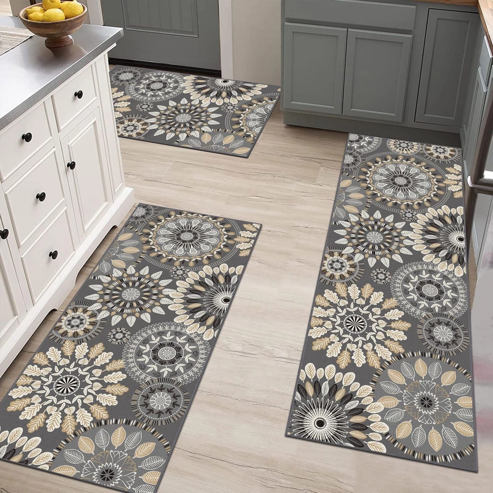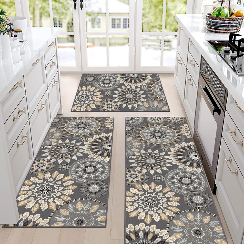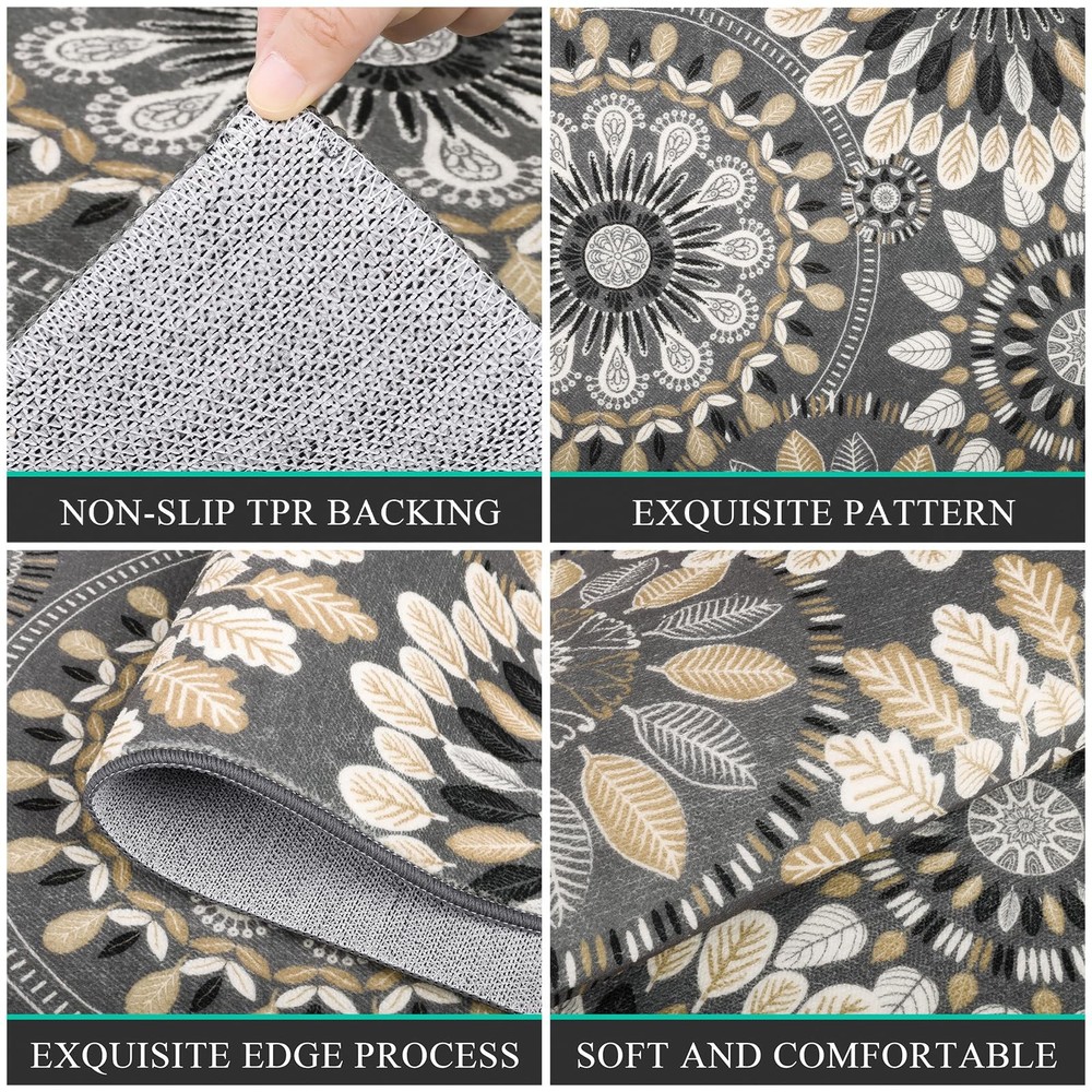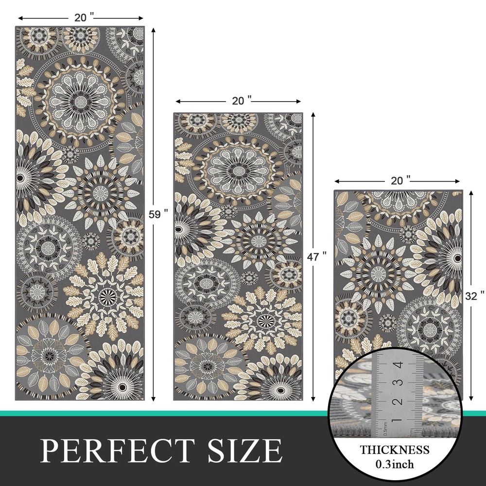 Boho Kitchen Rugs Sets 3 Piece, Farmhouse Non Slip Kitchen Rugs And Mats, Washable Kitchen Mats for Floor Non Skid Kitchen Runner Rug Non Slip Kitchen Rug Sets This farmhouse kitchen rugs sets of 2 has a non-slip TPR backing that firmly grips the floor without slipping, making it suitable for high-traffic areas. Washable Kitchen Mat This washable non-slip kitchen floor mats can be machine washed with a mild detergent or cleaned daily with a broom and wet wipes. Delicate Wrapped Edges This farmhouse kitchen floor mat with delicate wrapped edge will not fall out of line. The polyester material is sturdy and will not deform. Boho Kitchen Rug Mat Sets 3 Piece, Farmhouse Non Slip Kitchen Rug Runner, Washable Non Skid Kitchen Rugs Boho Kitchen Rug Runner This non slip kitchen floor mat for the kitchen can bring some vibrant colors to your kitchen. Make your room look more vibrant and perfectly match your home. Farmhouse Kitchen Rug Mat Non-Shedding Made of polyester, this boho kitchen rugs and mats set will not fade or deform after long use and will fit perfectly into your home. widely used Kitchen Floor Mat This washable kitchen mat can be used as a bedroom mat, living room mat, bathroom mat, hallway mat, suitable for any place in your home. Farmhouse Kitchen Rug Sets 3 Piece: This boho farmhouse kitchen mat measures 20 "x32"+20 "x47"+20 "x60", which can perfectly match your home's decoration style. Bring a splash of color to your home and make your home look more cozy and comfortable. Durable & Thin Kitchen Mats: This non slip kitchen rugs and mats set is made of Polyester, which is strong and durable and will not fade or deform. It is 0.3inch thick and can be placed anywhere in the house and in high traffic areas without tripping. Kitchen Rugs Washable: This farmhouse 4 piece kitchen rug sets can be machine washed for deep cleaning or wiped with a broom and wet cloth for daily cleaning. The sturdy polypropylene material can withstand frequent machine washing and will not fade or deform. Non Slip Kitchen Mat: The back of this washable kitchen rug runner is made of non-slip TPR backing, which can firmly grip the floor without slipping and is suitable for placement in areas with high traffic. Please keep the floor clean and dry before use. Widely Use: This kitchen floor mat is perfect as a boho kitchen rug sets 3 piece , non slip laundry room mat, washable bathroom mat, farmhouse hallway mat, non skid entrance runner rug. It is also a great gift for family and friends for Christmas Thanksgiving.