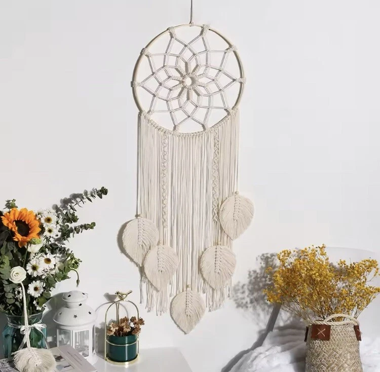 ✨ Handmade Boho Macrame Dream Catcher – Elegant Wall Hanging Décor ✨ Transform your space with this stunning handcrafted macrame dream catcher, designed to bring warmth, serenity, and bohemian elegance into your home. Featuring delicate woven cotton leaves and a beautifully intricate design, this piece is perfect for boho, rustic, and minimalist aesthetics. 🌿 Perfect for: ✔ Bedroom & Living Room Décor ✔ Meditation & Zen Spaces ✔ Boho Weddings & Housewarming Gifts ✔ Dream Catcher & Spiritual Wall Art 🛠 Product Details: ✔ Material: 100% Handmade Woven Cotton Rope ✔ Size: 85cm x 30cm (33.5in x 11.8in) ✔ Lightweight & Easy to Hang ✔ Eco-Friendly & Natural Fibers 💡 Why You’ll Love It: ✔ Handcrafted with Love – Each piece is uniquely woven for a one-of-a-kind feel. ✔ Aesthetic & Trending – The perfect touch for boho, farmhouse, and minimalist homes. ✔ Premium Quality – Durable, soft macrame cotton for a cozy and elegant vibe. ✔ Gift-Ready – A thoughtful, unique gift for free spirits and décor lovers. 🚚 Shipping & Returns: ✅ FREE Shipping! (Included in the price) ✅ Processing Time: 1-2 Business Days ✅ Estimated Delivery: 7-14 Days ✅ 100% Satisfaction Guarantee – Hassle-Free Returns 🎁 Limited Stock Available – Order Now to Elevate Your Space! 🎁