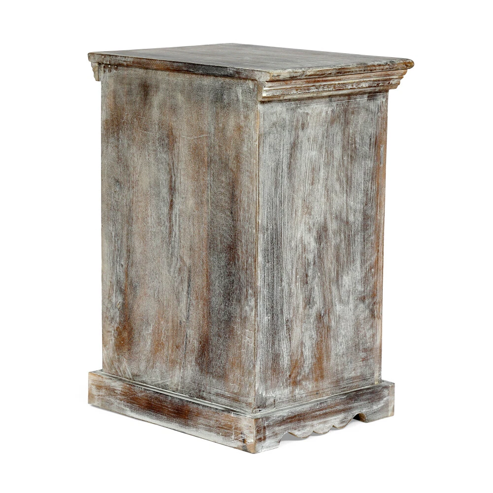 With a durable mango wood frame and washed finish, our nightstand offers incredible structure and stunning looks for your interior space. This side table is the perfect companion to any living space with its drawer and cabinet space for storage. Featuring a distressed design, this nightstand adds sophisticated grace to any bedside or sofa. HANDCRAFTED BOHO DESIGN: This accessory is expertly designed and handcrafted with artisan expertise. Any natural variations are not product flaws, but rather, will ensure that your purchase is truly a one-of-a-kind product. This offers a carefree, unconventional look and a variety of textures for your interior space, emphasizing an earthy boho touch to your decor with its rich handcrafted mango wood and washed finish. MANGO WOOD: Mango wood features gorgeous golden browns with natural hues that come from spalting, making each piece a one-of-a-kind color. Not only does this hardwood showcase unique patterns and take well to stains, but it also offers dense durability to resist wear and tear. WASHED FINISH: This nightstand is finished with a complementing wash that enhances the overall look of the piece. This distressed look emphasizes its boho style and gives this piece an extra boost of charisma. STORAGE SPACE: This accessory offers one drawer and a cabinet for storing and organizing your items. These are finished with ring handles and the cabinet door is held shut with two latches. DIMENSIONS: Choose an accessory that is the perfect size for you and your furniture. This nightstand is 17.75"W x 13.75"D x 24.00"H. You will love how much your space can transform with the simple addition of this charming nightstand. Top Material Details : Mango Wood Frame Material Details : Mango Wood Leg Material Details : Mango Wood Care Instructions : Wipe clean with a dry cloth, when neededTop Material Details : Mango Wood