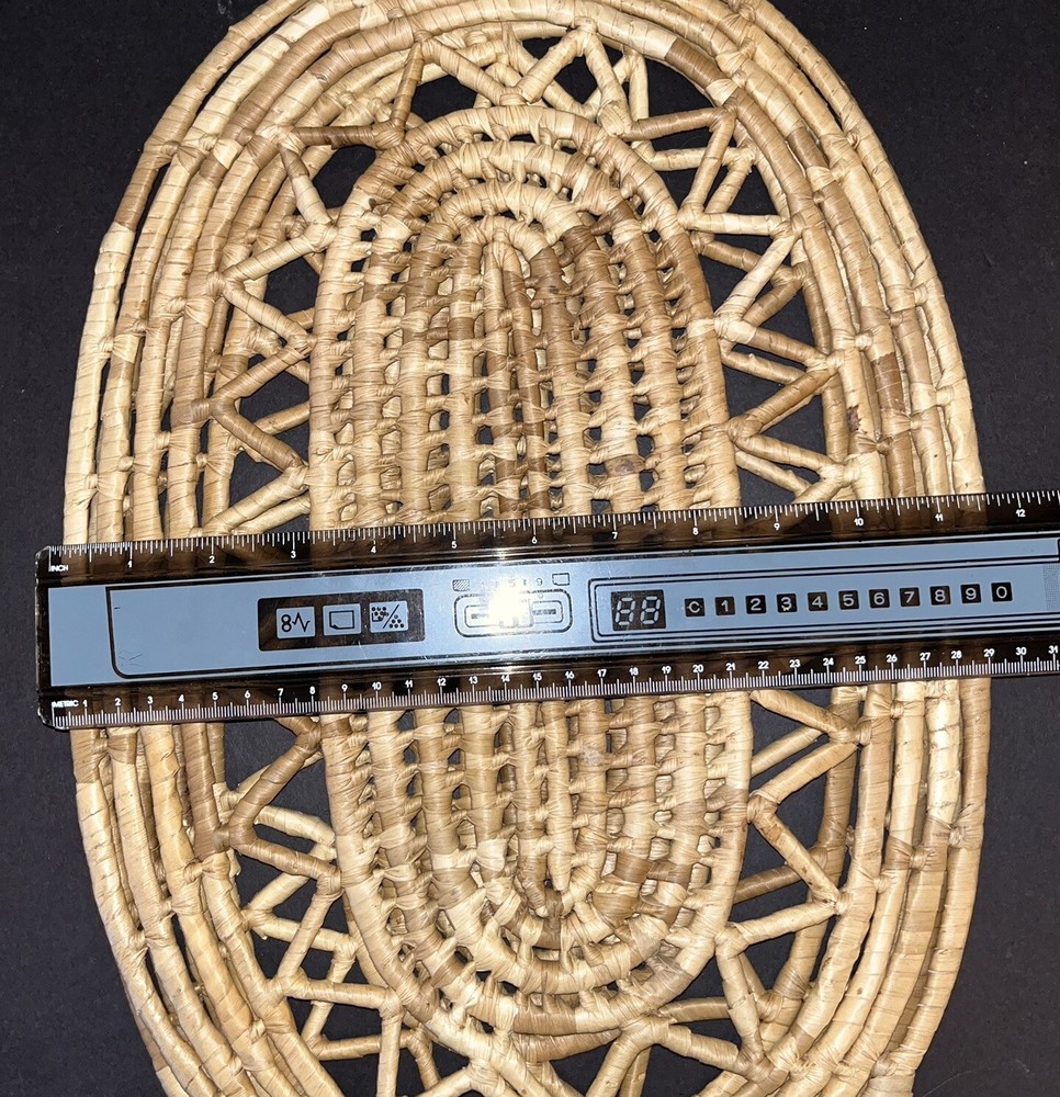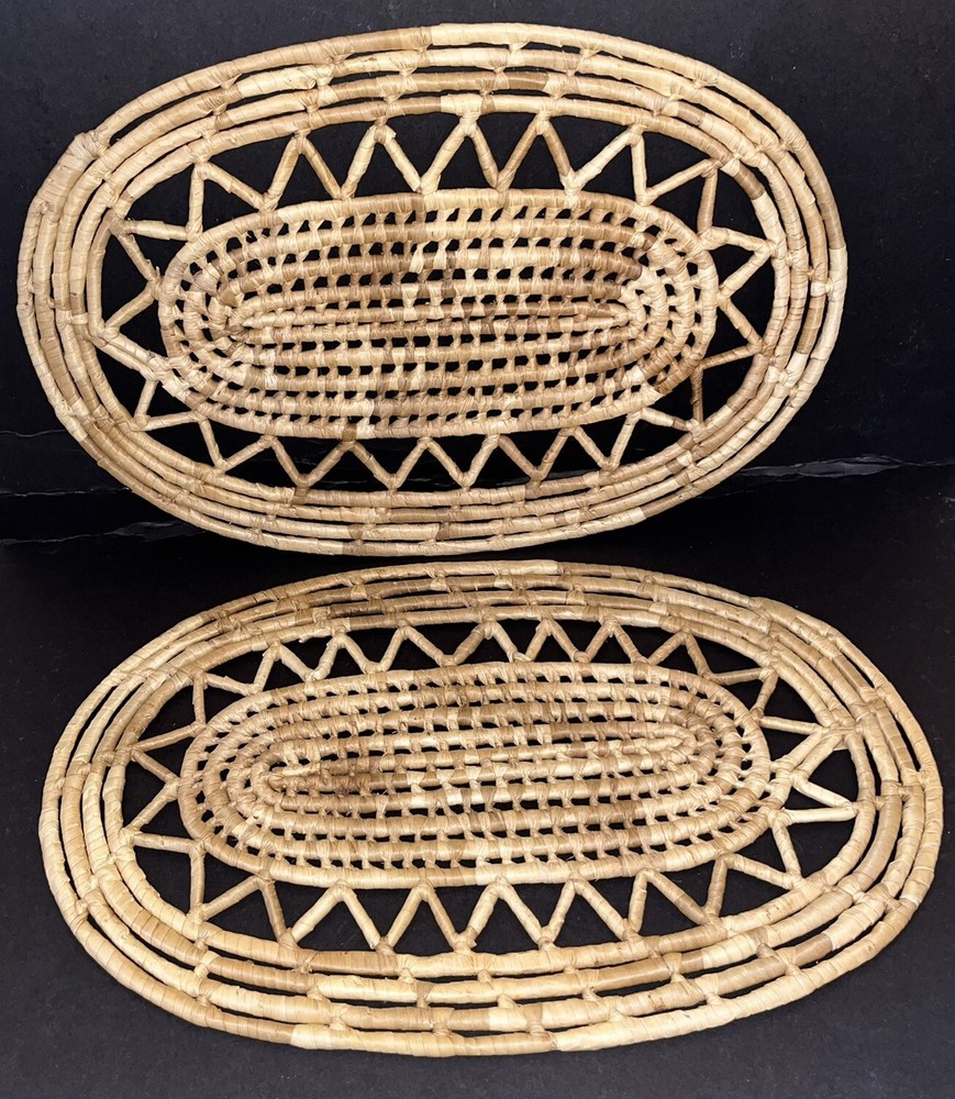 2 Oval Straw Trivets Hot Pads Woven Rattan Raffia Boho Retro 17 x 11.5