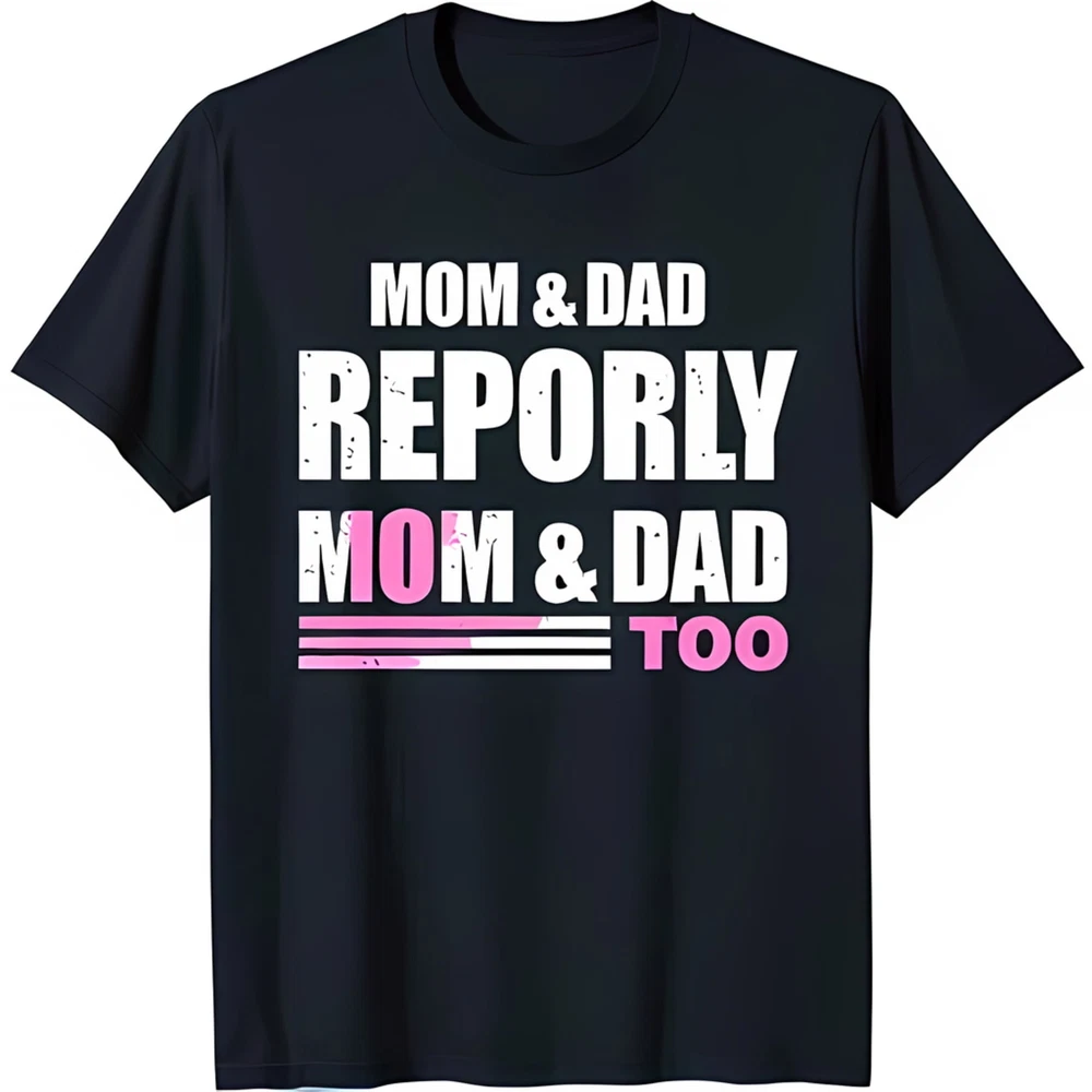 Bold Black T-Shirt with Eye Catching 'MOM & DAD REPORTLY' Graphic