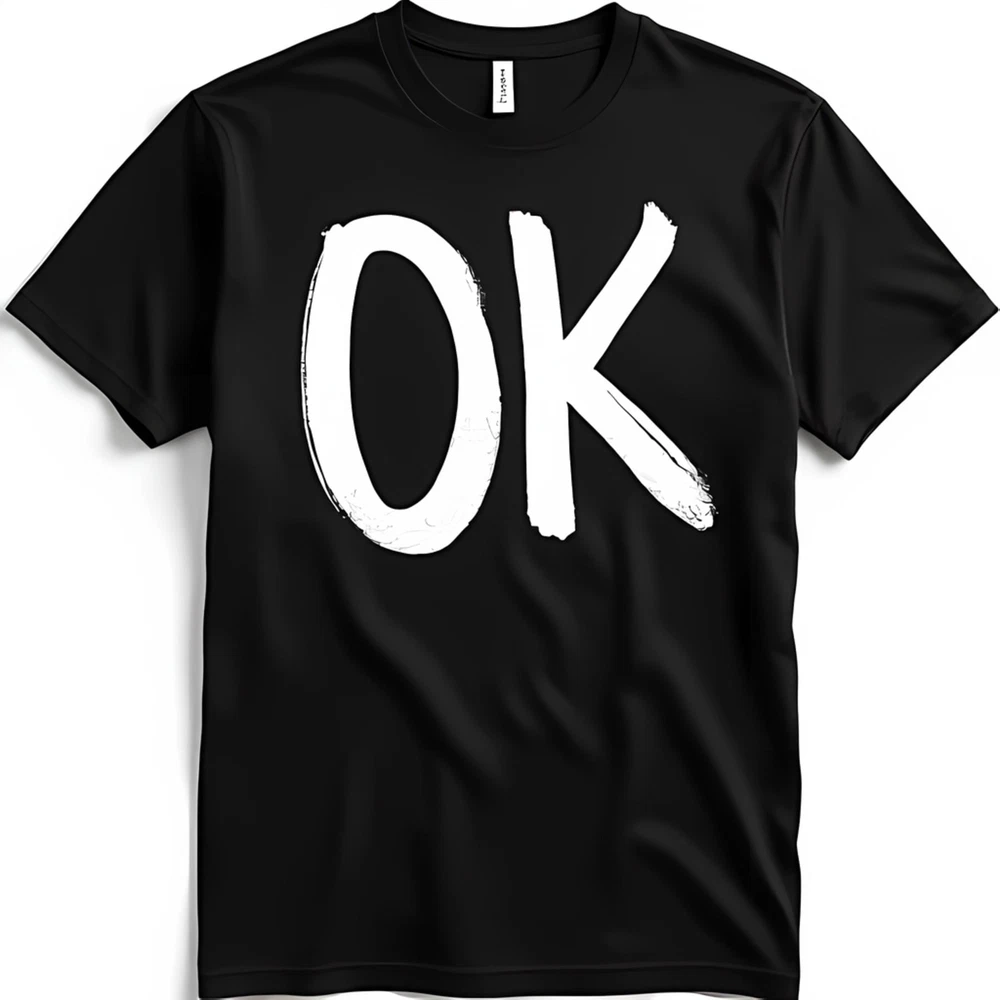 Bold Hand Drawn OK Graphic Black T-Shirt for Casual Style