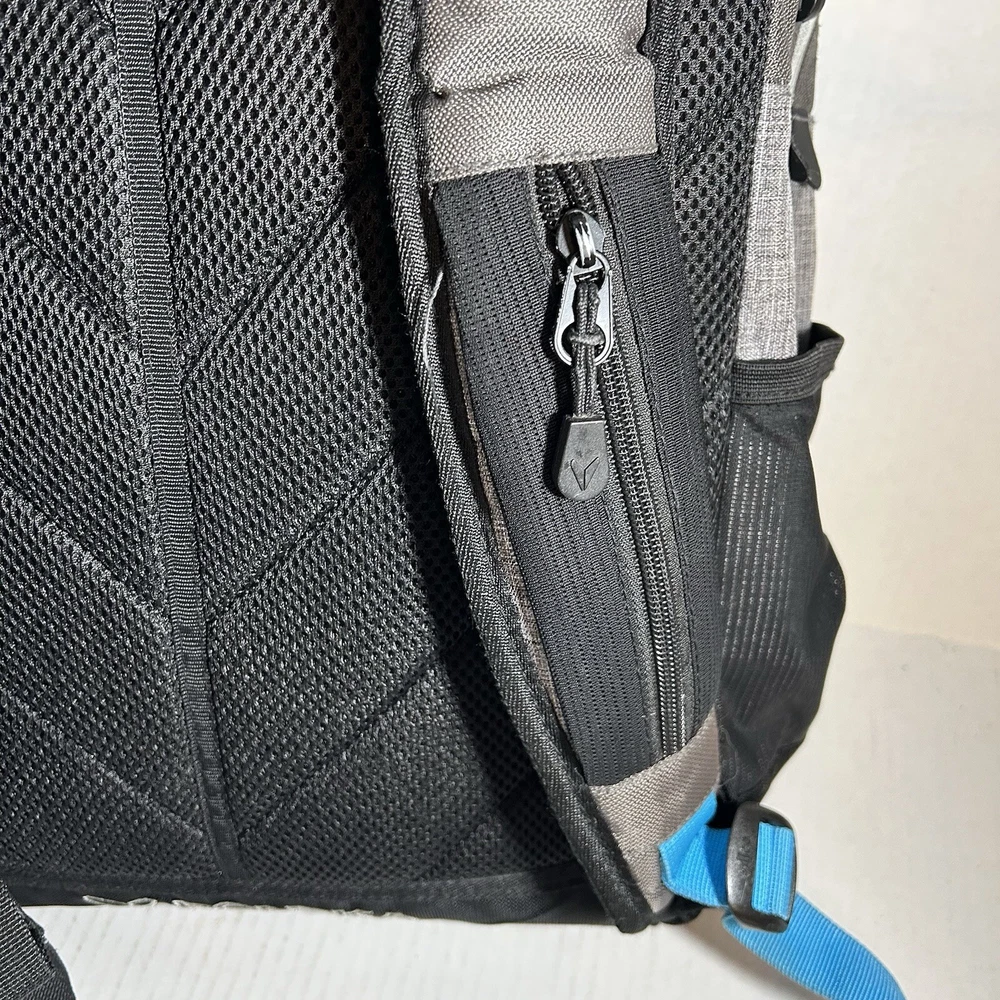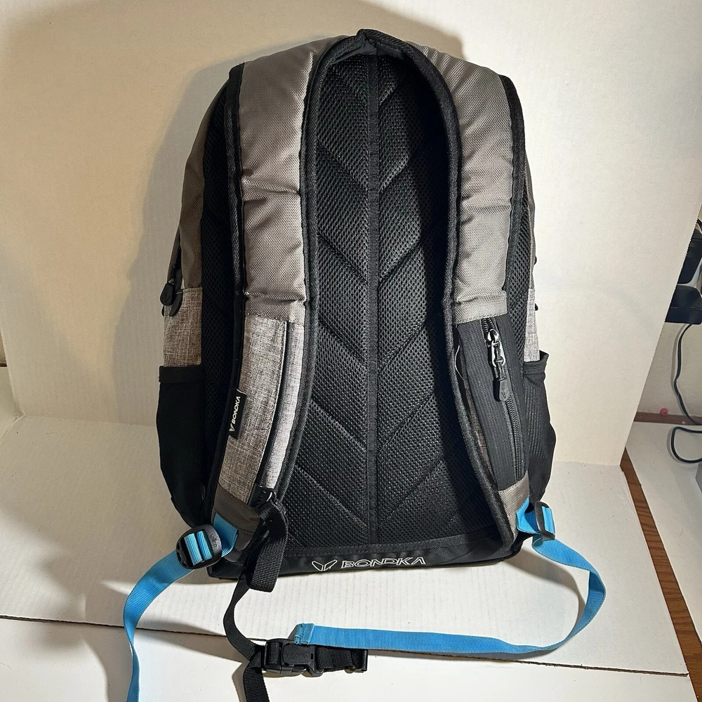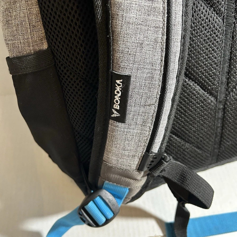 Bondka Eolus Backpack in Grey/Blue/Black is in good condition, with a small hole in the side pocket and light staining and marks on the front blue part from age and wear. Please see Photos for Condition of Backpack. The Bondka 19.5" Eolus Backpack in Grey/Blue/Black is designed for school and everyday use. This backpack, suitable for men, features adjustable straps for a comfortable fit and a laptop sleeve for protection. Made of polyester material, it offers ample storage space and organizational pockets. The stylish blue accents on the grey and black exterior give it a modern and versatile look, making it a practical choice for carrying essentials while on the go.