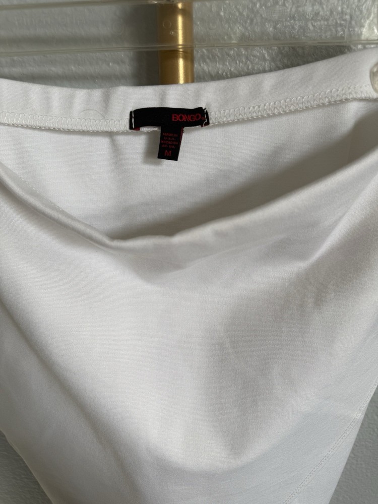 NEW! Bongo white skirt size medium This elegant white skirt is perfect for any occasion. Its sleek design offers a sophisticated look. 95% polyester, 5% spandex About 13 1/2” at waist 19” long and then about 21 1/2” long where the style sits a little longer (see photos)