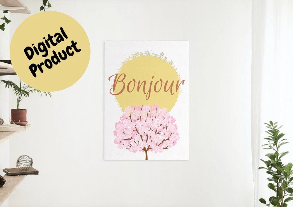 Bonjour Printable Wall Art Positive Wall Art Neutral Wall Art Printable Art Material: Premium luster photo paper Print type: Inkjet printing One side printed + The finish provides the highest possible resolution and color saturation + Lasts up to 200 years in color and 400 years in black-and-white + Printed on high-quality resin-coated photo base paper medium + Posters can be hung with double-sided tape, tacks, or framed + Hand washing with a gentle cry cloth is recommended for extended durability I will hand select the best choice of paper for your chosen design to ensure top quality results for a beautiful, bright and luxurious print. All prints are sealed in cellophane slips for protection during transportation, and are shipped in a protective cardboard envelope.