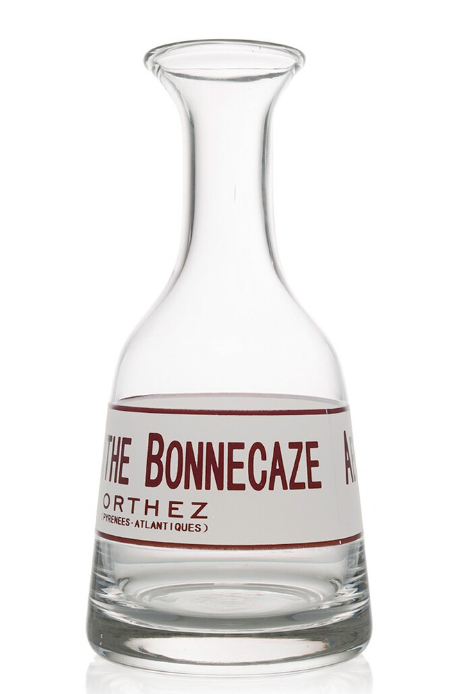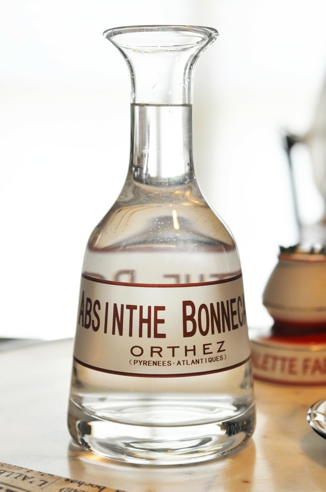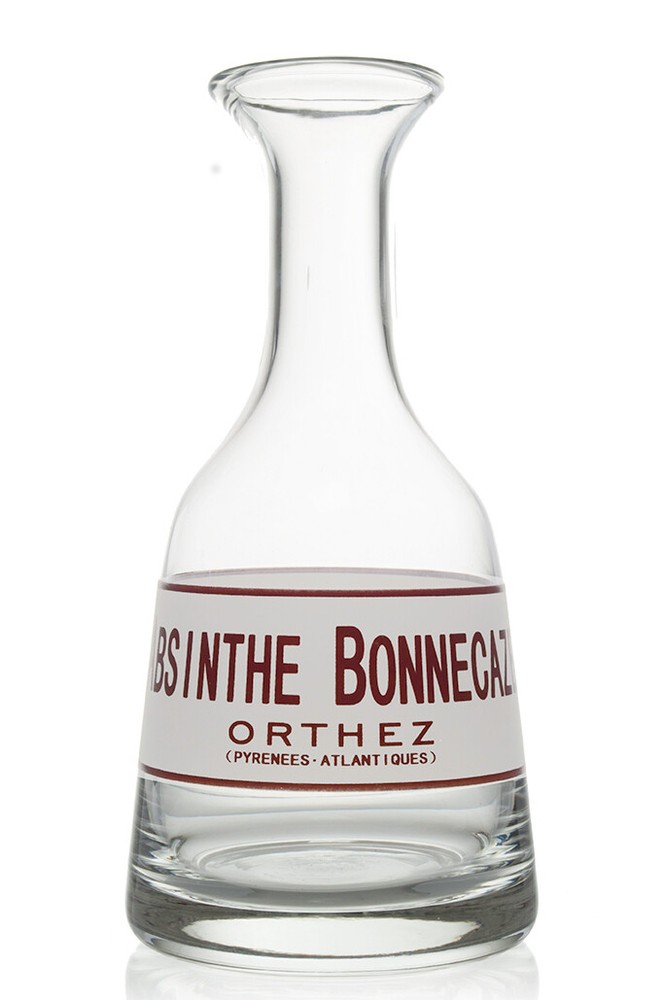 Absinthe Bonnecaze French Bistro Carafe This mouth-blown, handmade reproduction carafe was inspired by similar pieces found in bars and bistros throughout Europe in the 19th and early 20th centuries. Carafes generally sat on bistro tables and were commonly used by the customer in preparing their own drink, particularly in the making of an absinthe. Besides being used to hold water, these carafes were also popular promotional and marketing tools used mostly by alcohol manufacturers. Dripping water by a carafe was the most utilized method of adding water to the absinthe during the Belle Époque. The correct technique is to slowly, continuously drip the water onto the sugar cube until has completely dissolved from the spoon, and fallen into the glass of absinthe. Measures approximately 9.25" (23.3 cm) tall. Base measures approximately 4.375" (11.1 cm) in diameter. Holds approximately 25 floz (.73 L). Hand wash only. Mouthblown, clear glass. Hand-made. Imported.