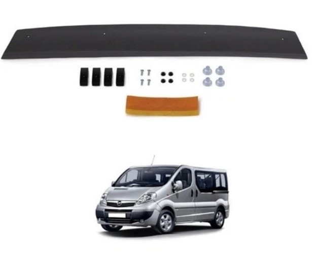 Item Description Short Black Bonnet Deflector - Vauxhall Vivaro 2001>2014 Gloss Black Finish Simple fitting - fits in minutes A Quick and Stylish Upgrade! Protect your bonnet from stone chips with our quality acrylic bonnet deflector for the Vauxhall Vivaro, Renault Trafic & Nissan Primastar 2001-2014. In a dark black finish, this bonnet deflector is a stylish upgrade for your Vivaro, Trafic or Primastar as well as a practical accessory. The bonnet deflector is simple to fit and no drilling is required. Specially designed fixing clips mount to the underside of the bonnet for a hassle free fit and the deflector is ready to go in a matter of minutes. Fitment: Vauxhall Vivaro 2001-2014 Renault Trafic 2001-2014 Nissan Primastar 2001-2014 *Will NOT fit 2014 onwards Models* Contents: This Kit Contains The Following Pieces: 1x Short Black Bonnet Deflector 1x Complete Fitting Kit including all brackets