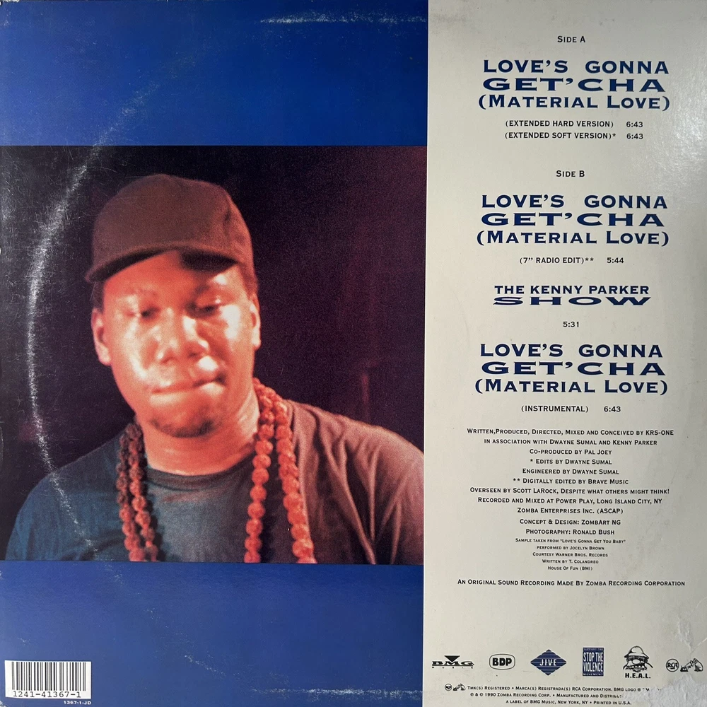 This Boogie Down Productions single on vinyl is a must-have for any hip-hop and soul fan. The record features the hit song "Love's Gonna Get'cha" and is in very good plus (VG+) grading. The sleeve is in very good (VG) grading with some ringwear and edgewear. The record is 12" in size and plays at 33 RPM. It was released in 1990 under the Jive record label. The black vinyl material adds to the overall aesthetic of the piece. This record is a great addition to any collection and is sure to impress.