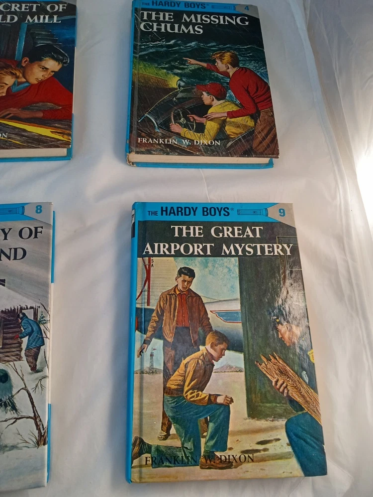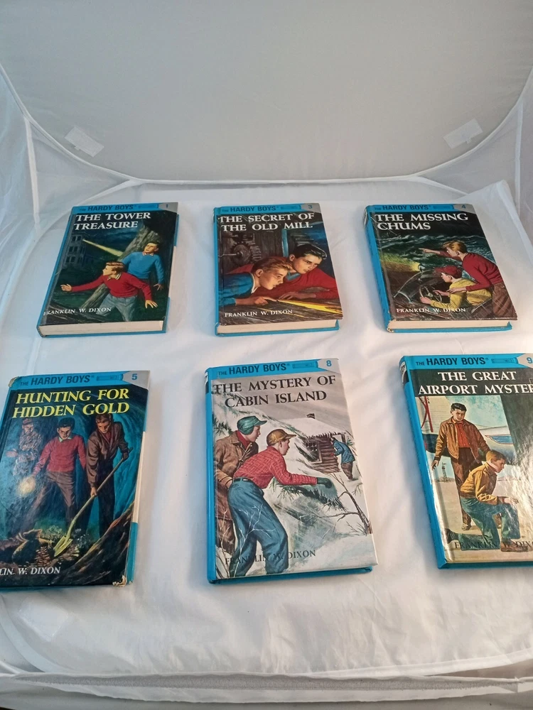 This lot consists of five vintage Hardy Boys books published by Grosset & Dunlap. The books are hardcover and written in English by Franklin W Dixon. They belong to the Antiquarian & Collectible category and are perfect for fans of the Hardy Boys character family. The books are in good condition and are a great addition to any book collection.