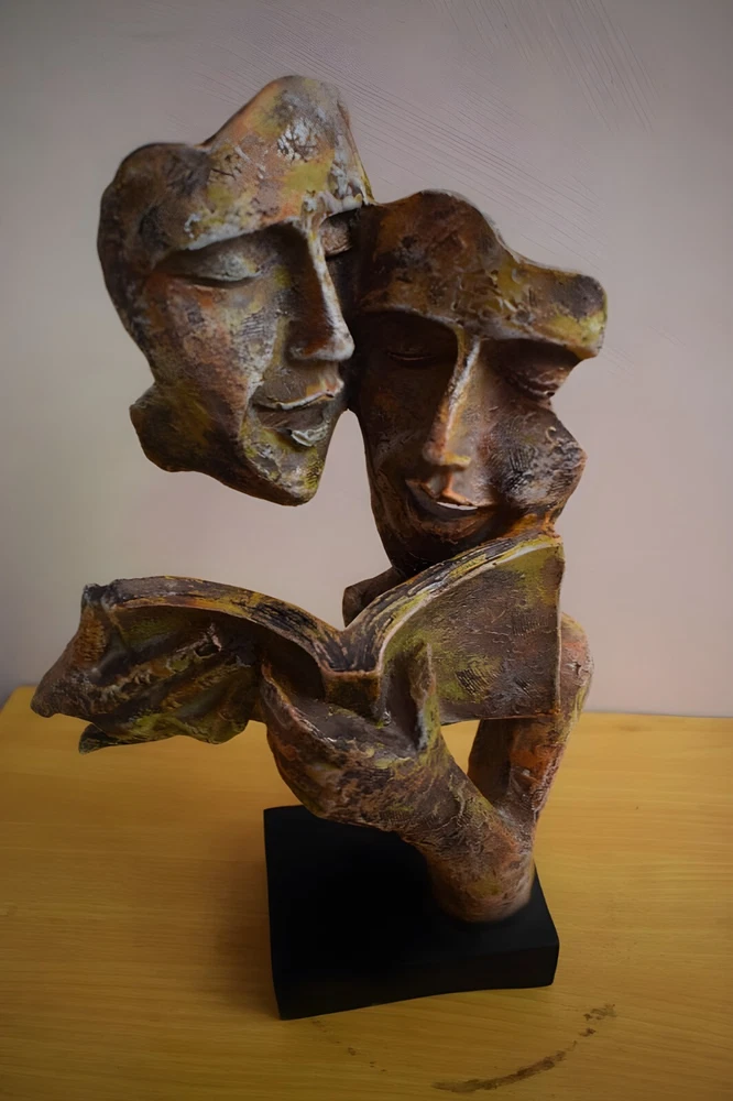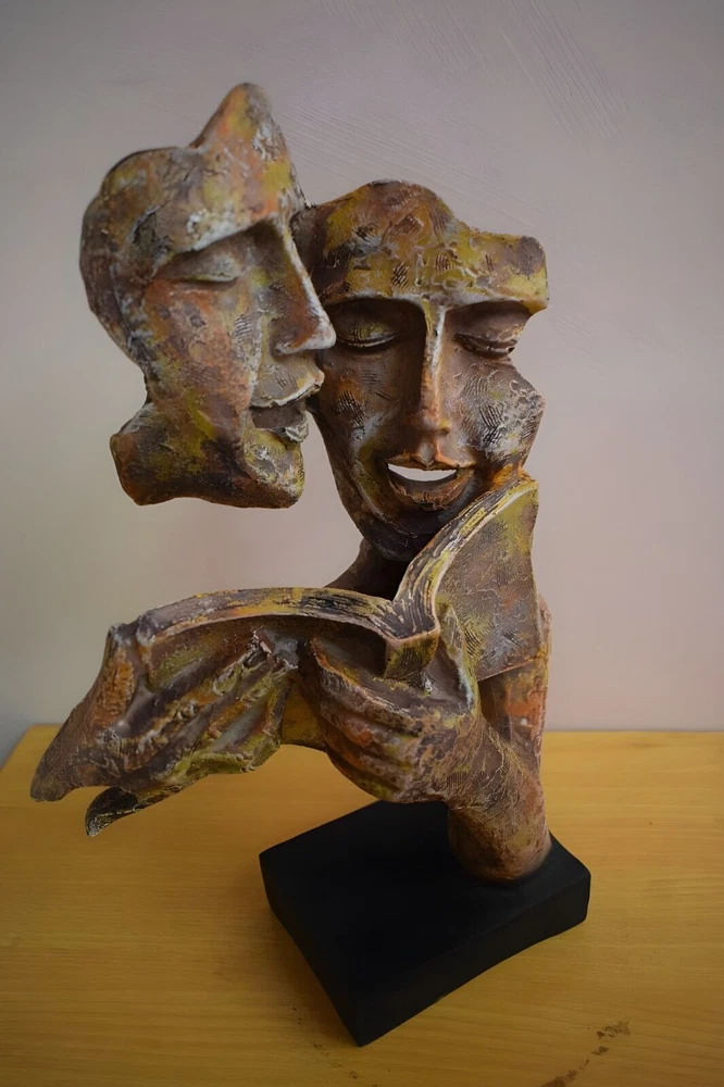 Package Contains - 1 Pc. Mother and Son Face Sculpture/Figurine. Couples Book reading Statue Best in Class Antique Colour Rich Looking Pattern. You can buy this for your beloved also. Add these to your decor or gift it to your loved ones, you will love it. You can Give any One Who interested in Book Reading. Material : Poly resin This beautiful statue is made in high-quality Poly Resin. It is made of good quality material. Size : Length - 8 " inch, Width 3" inch, Height 13" inch. It is one of the best home accents you will find and looks really stunning in an attractive colour.This handcrafted piece helps to enhance the beauty and charm of your home decor. This Modern Art is best for unique gifts suitable for housewarming, rich look art, art lover, thanksgiving, retirement gift, corporate gifts, new year, Diwali, inauguration, marriage, ceremony, anniversary gifts. Disclaimer - Images are for reference only actual product may vary due to photographic lighting condition. ??The Item will Deliver before Christmas!!!???