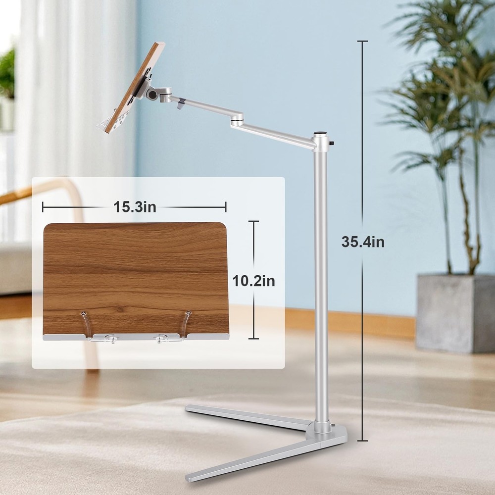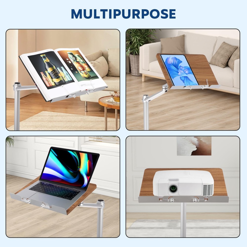 𝐒𝐭𝐮𝐫𝐝𝐲 & 𝐃𝐮𝐫𝐚𝐛𝐥𝐞:Our book stand holder adopts an aluminum alloy bracket and high-density wooden platform, which provides excellent support and stability, ensuring that your books are placed firmly while reading, allowing you to focus on what matters most. 𝐌𝐮𝐥𝐭𝐢𝐩𝐥𝐞 𝐀𝐝𝐣𝐮𝐬𝐭𝐦𝐞𝐧𝐭𝐬:This portable book stand features a swivel and liftable design that allows for easy adjustment of height and angle, ensuring an ergonomic reading posture whether you're reading or using a laptop. 𝐁𝐨𝐨𝐤 𝐒𝐭𝐚𝐧𝐝 𝐅𝐨𝐫 𝐑𝐞𝐚𝐝𝐢𝐧𝐠:Enjoy your favorite books, recipes, or sheet music without lifting a finger. Our book stand with book clips keeps the pages secure, allowing you to read comfortably for hours, or keep your hands free while studying, cooking, or playing a musical instrument. 𝐀𝐟𝐭𝐞𝐫-𝐒𝐚𝐥𝐞𝐬 𝐆𝐮𝐚𝐫𝐚𝐧𝐭𝐞𝐞:Our original intention is to satisfy every customer. If you are not satisfied with the product or have any suggestions, please contact us immediately,and we will do our best to solve the problem for you. 𝐌𝐮𝐥𝐭𝐢𝐩𝐥𝐞 𝐒𝐜𝐞𝐧𝐞 𝐔𝐬𝐚𝐠𝐞:Multifunctional portable bookshelf supports placing laptops, tablets, Bibles, sheet music, cookbooks, etc. Whether you use it in the living room, bedroom, office, music room, kitchen, or auditorium, it will be your perfect choice.