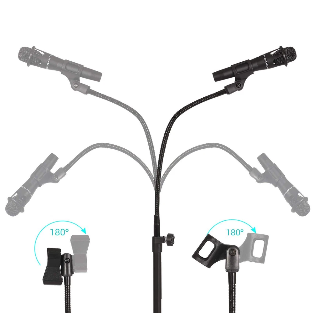 【UNIVERSAL MICROPHONE TRIPOD STAND】The sturdy tripod base keeps the mic stand upright and balanced, stable and non-slip. The high-quality thick steel pipe bracket is made of metal structure, which is strong and durable. HEIGHT ADJUSTABLE:This tripod stand can be extended and adjusted height to about 6 feet. Suitable for people with height of 6.5 feet.A very practical microphone stand. 【360°ADJUSTMENT OF GOOSENECK HOSE】The metal gooseneck hose length is 40.6cm/16inch. The gooseneck arm is adjustable and pivotable, and the height can be adjusted freely,suitable for adults or children.The gooseneck arm makes this microphone stand very flexible and easy-to-use. 【2 Mic Clips & 2 Cable Clips】The mic stand comes with 2 different styles of USA standard microphone clip holders(5/8-Inch mic adaptor and threading).Came with 1x3/8" to 5/8"screw.Suitable for most microphones on the market. With 2 clip-on cable holders to prevent wire confusion. 【WIDELY APPLICABLE & PORTABLE】The microphone floor stand tripod is not only suitable for meeting rooms, speeches,karaoke singing and guitar band performance,but also live broadcasts, online lessons, etc. It is very convenient to use and doesn't take up desktop space.The tripod can be folded for storage,comes with a shoulder bag, it's easy to carry, you can take it to any performance site at any time. 【WORRY-FREE SHOPPING】The microphone tripod stand comes with an installation manual. You can install and use it quickly. We offer a 30 days money-back guarantee, Worry-Free purchase. If you have any questions, please contact our customer service. We have been committed to providing high-quality products and customers with satisfactory services. Thank you very much for your support.