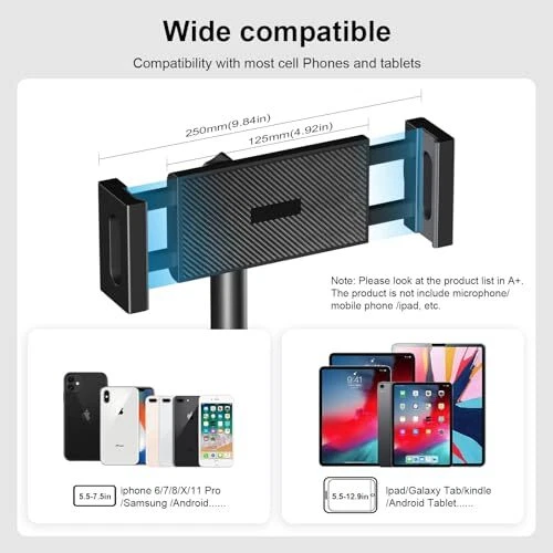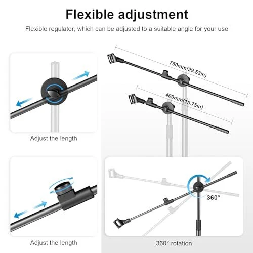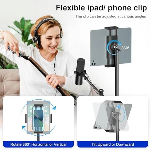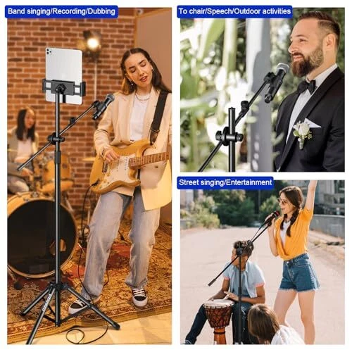 Mic Stand:Support Boom,Mic Clips, Tablet Phone Holder Free combination. Meet your various needs, perfect for stage performances, speeches, meeting rooms, parties, weddings, karaoke singing or podmic, etc. Microphone Stand: boom mic stand Tripod has longer legs than other products to hold your microphone securely in place. The non-slip feet prevent them from moving around. Boom Mic Stand: With an adjustable knob, the height of the microphone stand can be adjusted between 42 inches and 68 inches for all ages. It features an upgraded support structure for increased carrying capacity. Portable Mic Stand: The package comes with a premium carrying case. It only takes 2 minutes to disassemble the product for true portability. Wherever you go, you can quickly record or perform live. Mic Stand Boom Arm:The microphone clip is designed with a knob adjustment, making it easy for you to adjust the angle of the microphone without having to use a screwdriver to do so.