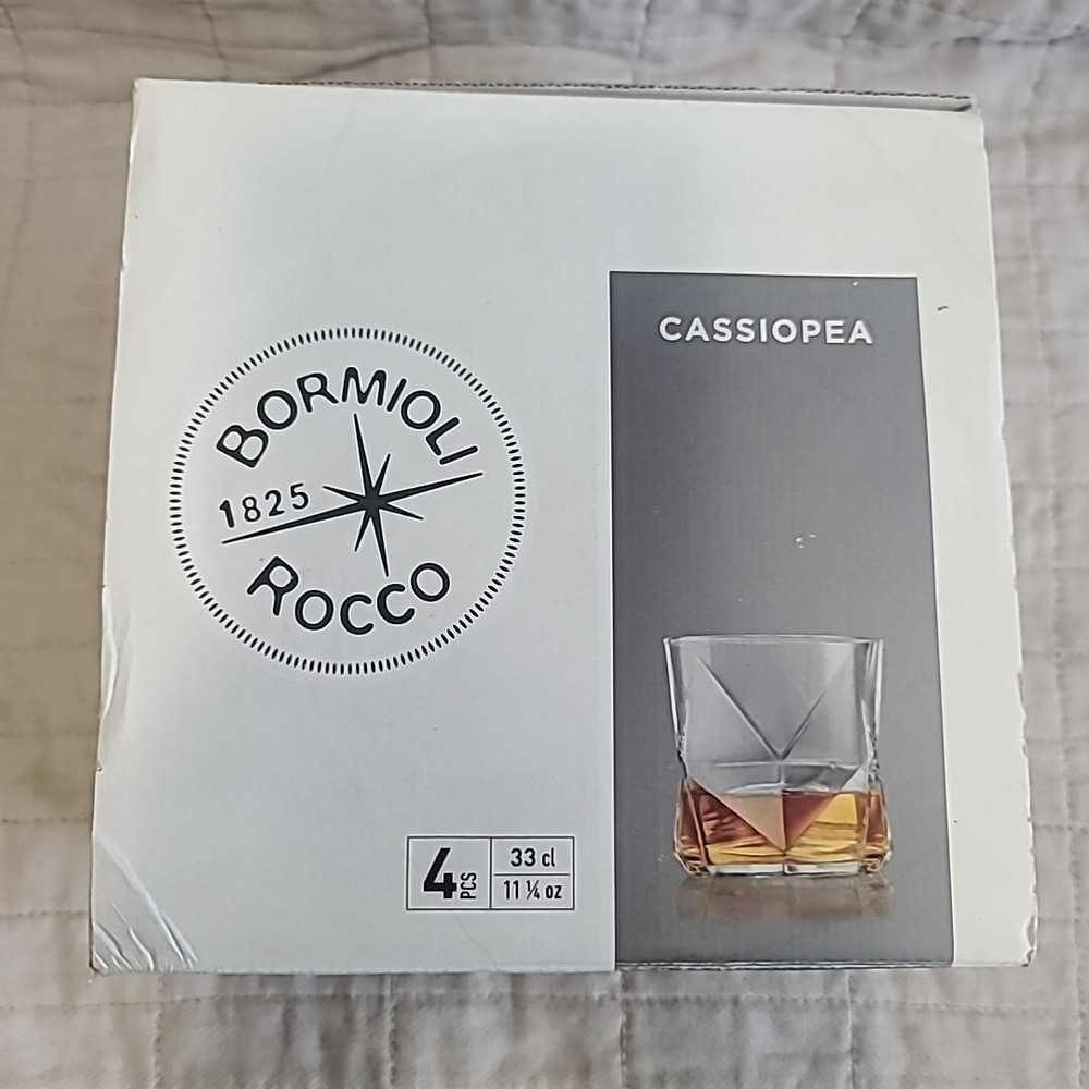 Bormioli Rocco 11.25oz Cassiopea Rocks Glass | Set of 4. Condition is New. Shipped with USPS Ground Advantage.