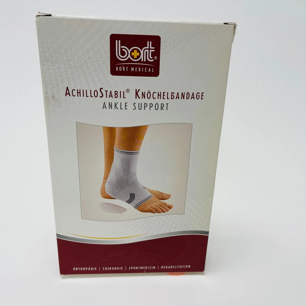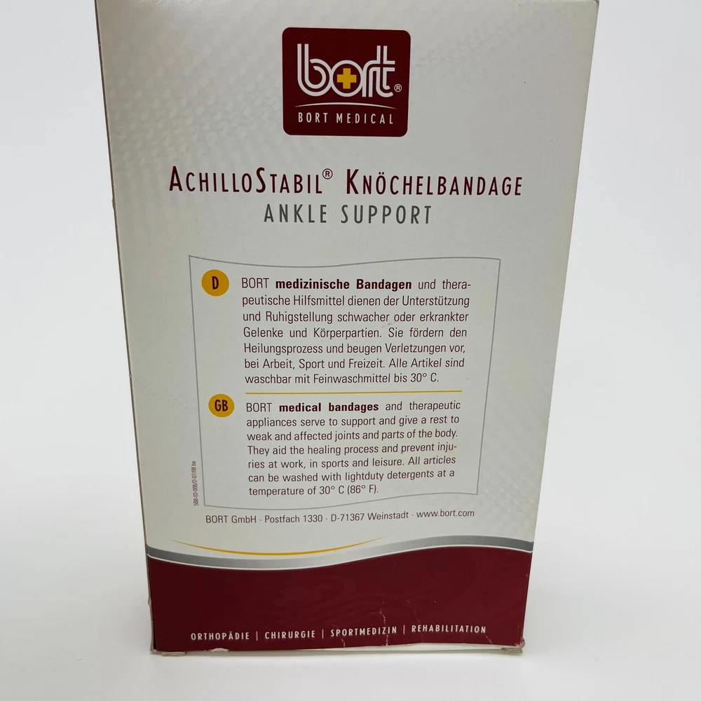 Achilles tendon support SOFTflex knitted fabric for more elasticity, stability and very comfortable to wear Viscoelastic pad alongside the Achilles tendon for intermittent massage Heel wedge to relieve the Achilles tendon during the acute phase included Compression class II COLOURS: beige, silver, black THE ECO-BENEFIT Velvety soft surface structure Reduced pressure in the ankle area Indications Chronic or post-traumatic irritation or tenderness in the Achilles tendon area Haglund syndrome heel irritation achillodynia irritation and pain of the Achilles tendon and surrounding areas after surgery e. g. Achilles tendon rupture bursitis subachillea medium 8.3″ – 8.1″ inches