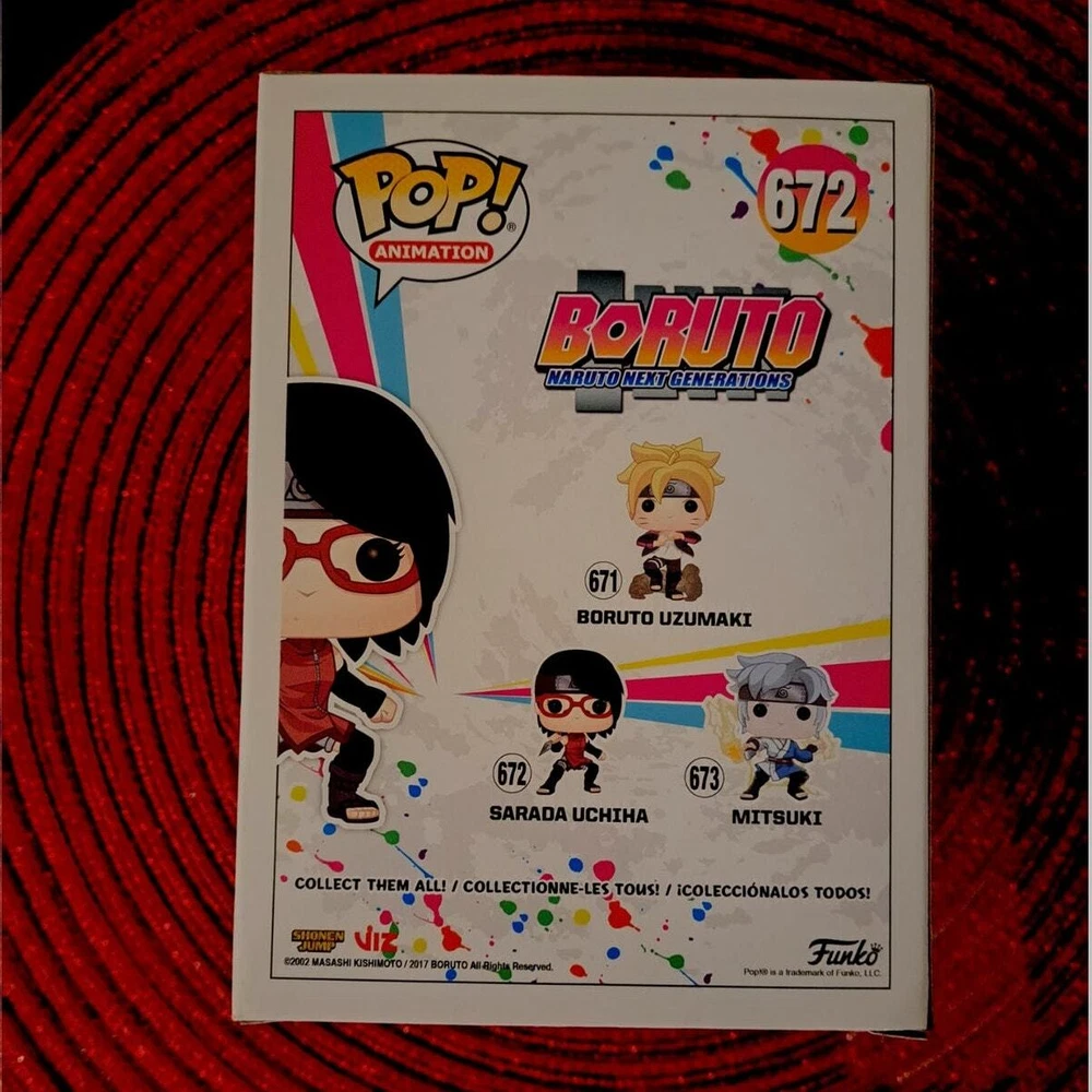 Boruto Sarada Uchiha Funko Pop 672. Window has some creases as shown in last photo. Will ship fast and with care!