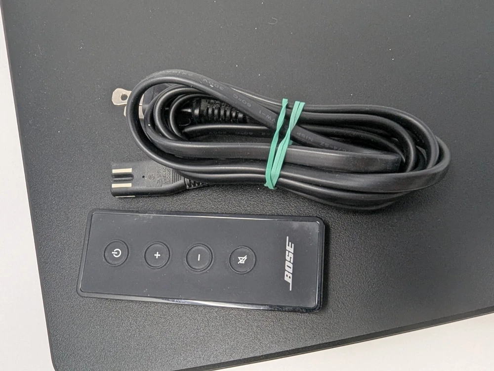 Seller Notes:“Unit with power cord, and remote, tested”Model:Bose Solo 410376MPN:410376Audio Inputs:Digital Coaxial RCA, Digital Optical TOSLINK, Stereo L/R RCA, 3.5 mm InputSystem Configuration:2.0 Systemgtin13:0017817587013Brand:BoseUPC:0017817587013Type:SoundsystemColor:BlackConnectivity:Wired, Bluetooth/WirelessShape:Rectangular