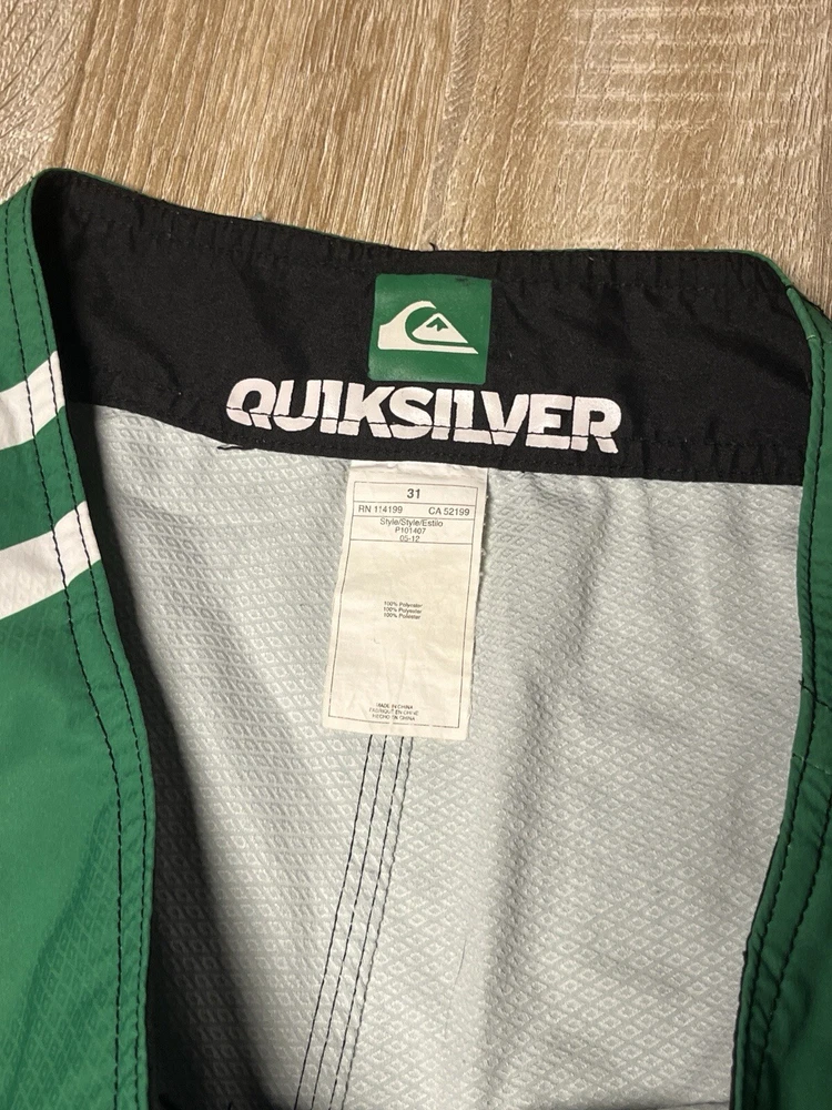 Show off your love for the Boston Celtics with these green Quiksilver NBA swim trunks. Perfect for any fan, these trunks are designed with the team's iconic logo and come in a size 31. Made for men, these regular-sized trunks are ideal for any swimsuit collection. The color green adds a pop of color to any outfit, making it a great choice for those who want to stand out. The trunk style is perfect for any beach or pool day, and the brand Quiksilver ensures high quality and durability. Add these to your collection today and show your support for the Celtics!