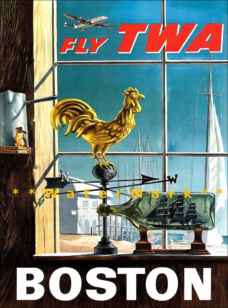 Boston Massachusetts Fly TWA Vintage Poster Print Retro Style Restored Art We offer Free US Postage or Reduced Postage for Canada & Worldwide. No charges for additional prints worldwide. ***These are not framed or stretched or mounted NOTE:**Delivery dates shown are only "Suggested" Order Early To Avoid Post Delay Dramas **Read Please: The print looks best with a nice mat (passe - partout or passepartout ) and frame. These prints are the exact proportion as the original and will not be stretched to fit the paper or canvas...this would cause a distorted print The image will be the exact aspect ratio as per the original poster, so there might be more white on the top and bottom, or side to side. Options available..use the drop-down menu * Watermark will not be on your image. *Cloth Canvas an artist canvas used also in museums and art galleries *Photo Gloss Paper is a high-quality Professional Photo paper *Matte Photo Paper is a great solution if you do not want a Gloss, this paper is great with colors *Luster Photo Paper this photo paper is neither glossy or mat. Glossy paper has a smooth texture, luster paper is slightly textured. This option is a good choice for something in between Metallic, Photo Gloss and Matte *Metallic Pearlescent Photo Paper is a very high-quality paper with a Pearlescent sheen, a glossy finish, and unique metallic appearance, these prints have extra visual interest and depth. This paper uses a combination of film laminate layers that produce striking, dimensional, lasting images on an ultra-bright background. The effect is sometimes described as "chrome on paper." This is NOT a metal plaque, it is a photo paper This poster print will be shipped in a sturdy container. We will ship usually within 24 business hours of payment, except for weekends or US Holidays If there is a question, please do contact me The delivery date given on the listing page page is not a guarantee by the post All is done to send you the best quality poster image. Don't forget to check out the Sales. There is a great Buy 3 Get 1 Free Offer!! Shipped with no extra postage..Worldwide! There are a variety of reasons why the images on your monitors don't match each other. The simplest is that each monitor is different; even monitors with exactly the same model won't have colors that match up perfectly