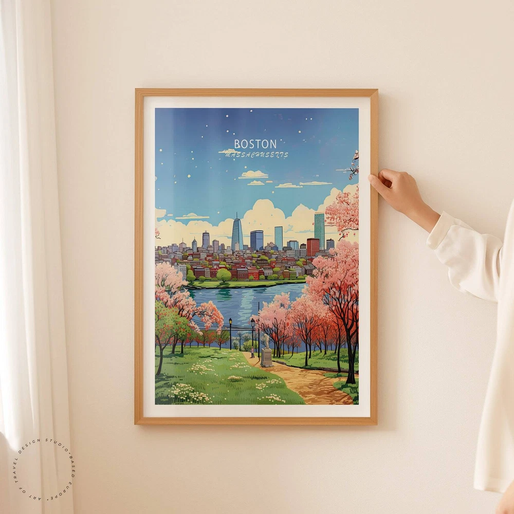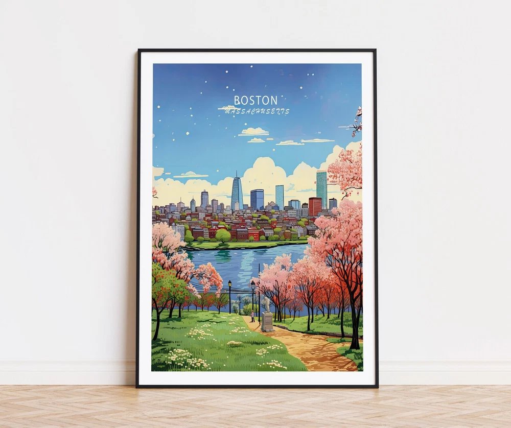 Boston Travel Poster Massachusetts Wall Art Boston Massachusetts Print Home Decor Custom Travel Poster Birthday Gifts Material: Premium luster photo paper Print type: Inkjet printing One side printed + The finish provides the highest possible resolution and color saturation + Lasts up to 200 years in color and 400 years in black-and-white + Printed on high-quality resin-coated photo base paper medium + Posters can be hung with double-sided tape, tacks, or framed + Hand washing with a gentle cry cloth is recommended for extended durability I will hand select the best choice of paper for your chosen design to ensure top quality results for a beautiful, bright and luxurious print. All prints are sealed in cellophane slips for protection during transportation, and are shipped in a protective cardboard envelope.