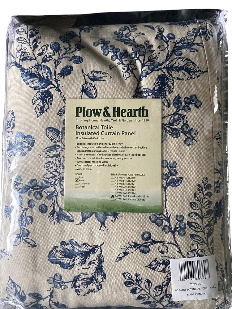 Plow & Hearth Botanical Toile Insulated Double-Lined Panel 42 W X 45 L Blue. Condition is New. Shipped with USPS Priority Mail.