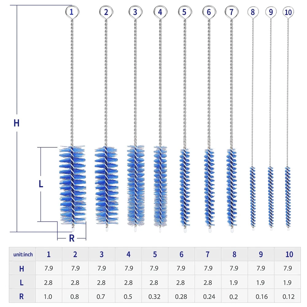Bottle Cleaning Brushes, 8 Inch Nylon Tube Brush Set, Cleaner for Narrow Neck Bottles Cups with Hook, Set of 10pcs. Navy Blue ➽ Material: Stainless Steel and Nylon Bristles for Bottle Cleaning Brushes and Pipe Cleaning Brushes ➽ Set of 10pcs 8 inch Tube cleaning Brushes with Varying Diameters. ➽ Different Size Tube Brushes: 2, 3, 4, 5, 6, 8, 12, 16, 20, and 24 mm (1/16, 1/9, 1/6, 1/5, 1/4, 1/3, 1/2, 2/3, 3/4, and 1inch) ➽ Each 10 Different Size Tube Brush Attached on a Keychain. Not only Does It Keep Them All Together but It Makes it a Lot Easier to Find the Size That’s Right for the Job. ➽ Perfect for Hard-to-Reach Spaces Cleaing: Bottle Cleaning Brush, Glass Cleaning Brush, Straws Cleaning Brush, Pipe Cleaning Brush, Gun Cleaning Brush, Computer Keyboard Cleaning Brush, Coffee Cleaning Brush, Feeding Tube Cleaning Brush, Flexible Brush, flexible wire brush, pipe brush. Shipping We offer FREE shipping on all orders! We ship within Three business days of payment, usually sooner. We use a selection of shipping services such as UPS, FedEx, USPS etc. We only ship to the lower 48 states, no APO/FPO addresses or PO Boxes allowed. Local pickups and combined shipping options are not provided at this time. Return You can return a product for up to 30 days from the date you purchased it. Any product you return must be in the same condition you received it and in the original packaging. Please keep the receipt. Payment We accept payment by any of the following methods: PayPal Please pay as soon as possible after winning an auction, as that will allow us to post your item to you sooner! Feedback Customer satisfaction is very important to us. If you have any problem with your order, please contact us and we will do our best to make you satisfied. Contact Us If you have any queries, please contact us via ebay. We usually respond within 24 hours on weekdays. Please visit our eBay store to check out other items for sale! Thank you for shopping at our store.