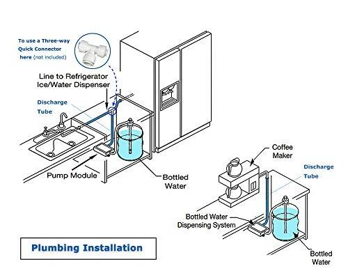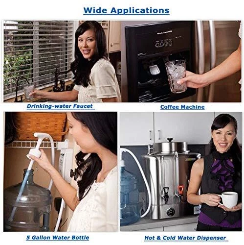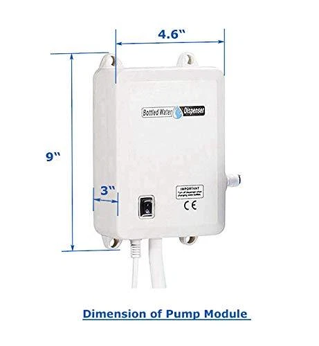110V Drinking Water Pump for 5 Gallon Bottle Dispenser Pump System for Refrigerator Ice Maker Coffee Machine Faucet (Classic- Dual Inlet) BOTTLED WATER DISPENSING PUMP SYSTEM (no jugs included): dual adjustable suction wands, 20FT discharge hose of food-grade material, BPA free, compatible for fridge, ice maker, coffee maker, hot and cold water dispenser etc. SMART ON-DEMAND WATER DISPENSER: to activate or shut-off the engine via a float sensor switch and deliver water under pressure 40 PSI automatically on demand, with over-heating protection QUICK FLOW WITH DUAL INLET: 1 gallon/min, less water bottle changes, fit for residential or commercial appliances LESS NOISE: recommended to fix the pump body inside a closet or on wall with provided silicone screws to minimize the vibration and keep the running noise less than 60dB (normally runs a few seconds intermittently) when priming QUALIFIED AND RELIABLE: 100% new dispenser pump tested before delivery (normal with water residuals inside), with 1 Year warranty guarantee and considerate customer service to reply your inquiry within 24H SPECIFICATIONS: Input: AC100-130V,50-60Hz Output: DC12V Max Current: 1.2A PSI Cut-off: 60 PSI Dimension: 9x4.6x3 In PACKAGE INCLUDES: 1 x Pump Module with a Rocker Switch 1 x 5 Feet Power Cord with a US Plug 1 x 20 Feet PPR Discharge Hose/ Tube (Diam:6.35mm /0.25 Inch) 1 x 48-Inch Suction Hose and adjustable 22.2-Inch Dual Suction Wands with 55mm Seal Caps) 4 x Silicone Screws (for mounting) to minimize the vibration or noise 1 x Optional Fitting for Refrigerators or Faucet etc. (a Compression Nut and a Sleeve/Ferrule) 1 x Installation and Maintenance Instructions TIPS FOR USERS: Pls. read the Instructions and Clean the Pump system (P4-5 of Instructions) before installation. All pumps are tested before delivery. There may be water residual left inside. Pls. be sure to remove the Inlet Pressure/ Flow Restrictor or any Filtrator of Commercial Brewers or Refrigerators before Plumbing which may cause the pump's Over-cycling malfunction (P3). For Air-in-Pump which may also lead to Over-cycling without water suction (P6): After the Plumbing and turning the Pump on, pls. open the Dispensing Valve of Appliances or Faucets to vent the airtill a constant water flow. For Refrigerators with Ice Makers, the Seal at the connection needs to be loosened or disconnected. On Jan 7, 2025 at 04:33:07 PST, seller added the following information: