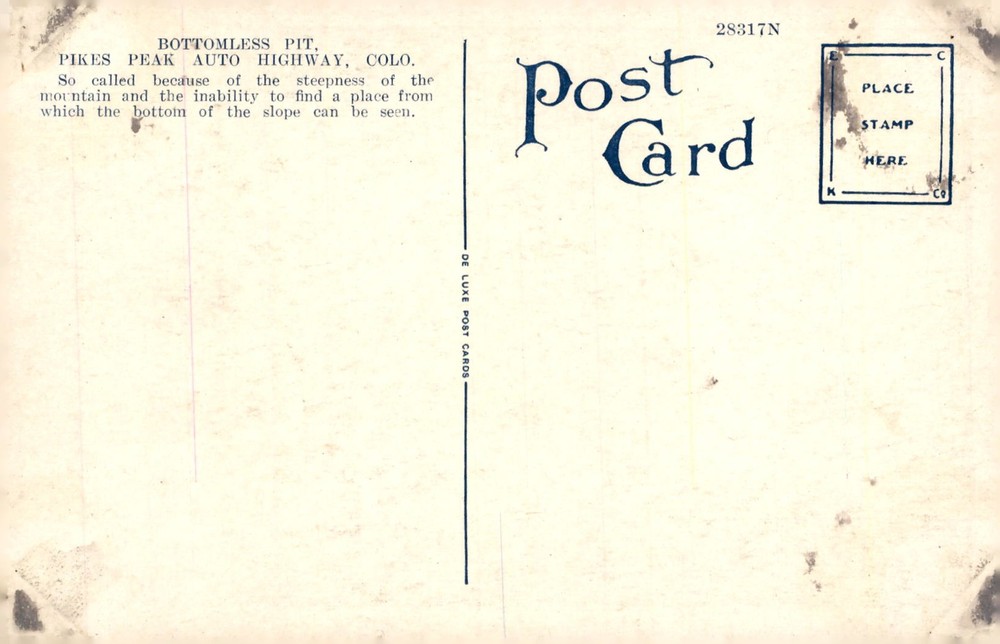 The Bottomless Pit on Pikes Peak Auto Highway in Colorado is named for its steep slope, making it impossible to see the bottom from any vantage point.