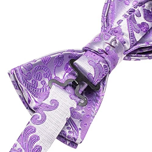 Men's Pre-Tied Bow Tie Set with Pink Paisley Pocket Square & Cufflinks