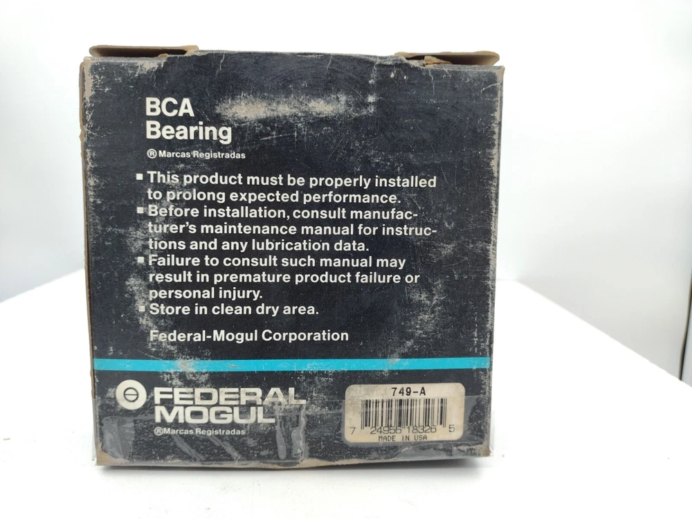 Bower Federal Mogul BCA 749-A Tapered Roller Bearing Cone Made in USA Condition: New / New Open Box. New Old Stock. Specifications: The 749A Federal Mogul is a cone for a single-row tapered roller bearing. This removable cone consists of the inner ring and rollers of the bearing. Together with a separately available cup (or outer ring), these parts make up a complete tapered roller bearing. The inner and outer rings have conical raceways and the rollers are tapered. This design enables tapered roller bearings to absorb radial and axial forces (in one direction). The geometrical qualities of tapered roller bearings prevent sliding movements between the raceways and rollers. This will keep component wear down to a minimum. However, a minimum load is required for proper bearing operation. Because cone and cup are separable, they can easily be mounted. In addition, end play (axial clearance) or preload can be adjusted by moving the components axially during assembly. OEM Website: DOA Guaranty : At Seller's option, DOA item(s) can be replaced or purchase price(s) refunded. Return shipping, if requested by Seller, is paid by Seller. If Seller elects to not have the item(s) returned, Buyer is responsible for disposal. All items are sold As-Is, Where-Is. Please contact Pristine Sales within 72 hours if (a) purchased item(s) arrive(s) D.O.A. (Dead On Arrival). If D.O.A. status is the result of shipping, the Buyer must make a claim with the shipping agent. At Seller's option, D.O.A. item(s) will be replaced or the purchase price(s) refunded. If the Seller requests a return, the Seller pays return shipping. If the Seller doesn't want the D.O.A. item(s) returned, the Buyer is responsible for item disposal. Warranty : 30 day warranty begins from the date Buyer receives delivery. All items are sold As-Is, Where-Is. All installations must be done by a Pristine Sales-approved, manufacturer-certified installer. At request of Seller, Buyer will provide documentation of analysis of any warranty-related issues. Returns : All sales are final, except the aforementioned D.O.A. and Warranty policies Please request any additional information and/or pictures before purchasing. Fine Print: The photos in this listing represent the item being sold, but the item pictured may not be the actual item shipped to the buyer. Because of the nature of our business as an industrial reseller, Pristine Sales often has multiple units of the same product in stock with some variances in package style and/or package condition. Pristine Sales guarantees that the item shipped will be as described in the listing. Each listing description describes the part's condition, not the packaging. Packaging may vary from item to item. If a buyer is concerned about the condition of the packaging, they should request photographs before making a purchase. The buyer is responsible for determining the viability of items purchased for the intended uses. Pristine Sales guarantees the accuracy of the item title on the listing and that it matches the part in the listing photos. Any other details about the item are listed as a courtesy. Buyers should check and confirm any measurements and other details listed in the item's details to ensure that the part being purchased is the part the Buyer wants. Items are being sold "As-Is, Where-Is." Shipping is a convenience, and the seller does not guarantee shipping once the item is picked up from the seller's location. The seller will endeavor to ensure and work with the buyer on timely delivery. Many items are available to be picked up locally. Manufacturer warranties may be available, and if the buyer needs a warranty, buyer should confirm applicable warranty with the manufacturer or whomever prior to purchase. Buyer agrees in no event shall the seller, seller's company, seller ownership entity(ies), associates, or affiliates be liable for any direct, indirect, punitive, incidental, special, consequential damages to property or life, or other damages whatsoever arising out of or connected with the use or misuse of products purchased. Buyer agrees purchased items will not be used in applications where life can be endangered or harmed. (3/5/2024) PROPOSITION 65 WARNING : WARNING: This product can expose you to chemicals including arsenic, which is known to the State of California to cause cancer. For more information, go to www.P65Warnings.ca.gov. International Buyers: Please note: import duties, taxes and charges are not included in the item price or shipping charges. These charges are the buyer's responsibility. Please check with your country's customs office to determine what these additional costs will be prior to bidding/buying. These charges are normally collected by the delivering freight (shipping) company or when you pick the item up, do not confuse them for additional shipping charges. We do not mark merchandise values below value or mark items as "gifts" - US and International government regulations prohibit such practices. (6/27/2023)
