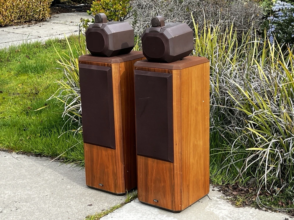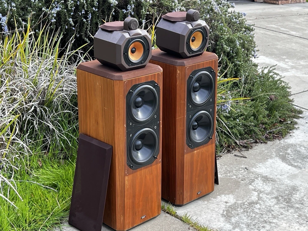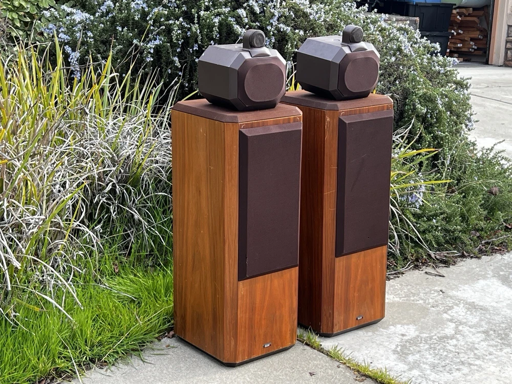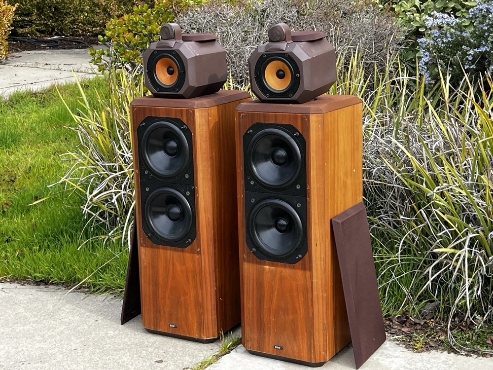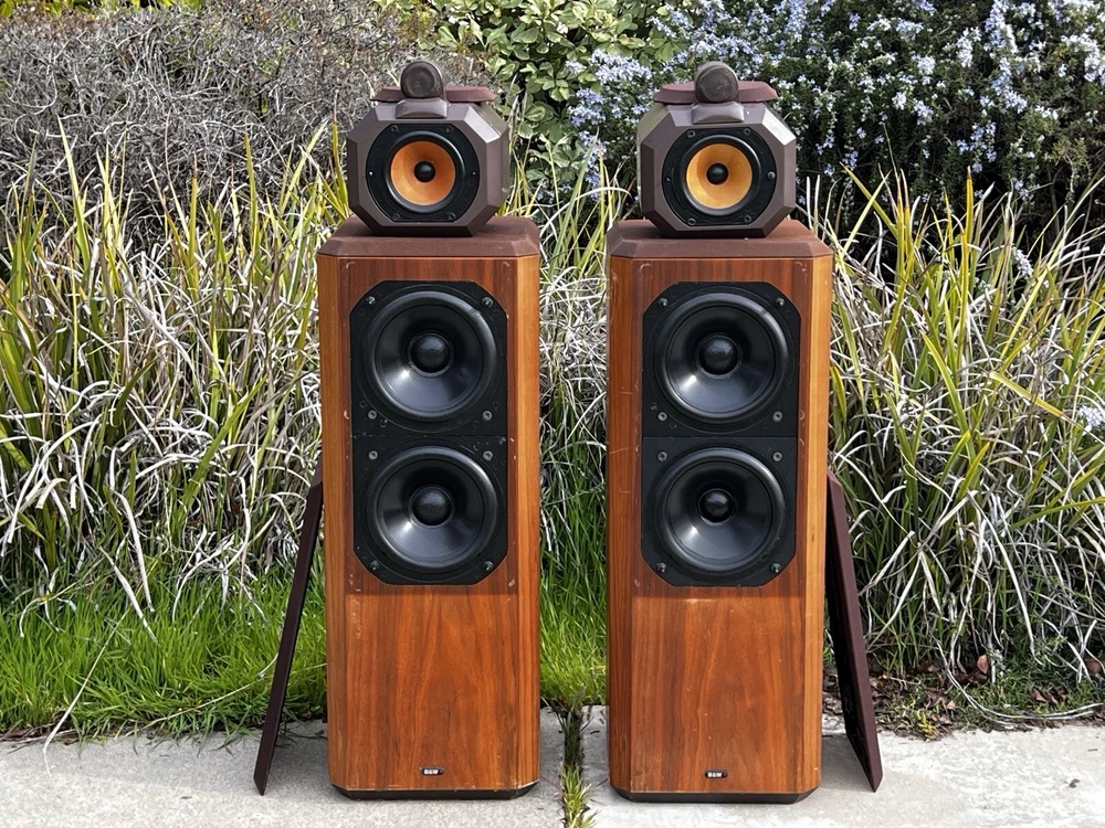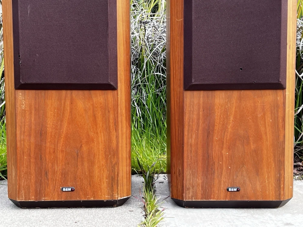 For Sale: Bowers & Wilkins B&W Series 80 Model 802 Speakers These classic speakers are in very good Working condition Specifications: Frequency Response: 55Hz to 20 kHz +- 2dB Low Frequency System: Closed box acoustic suspension with system resonance of 49Hz Dispersion: Vertical: ± 1dB over 10 degrees of center window Horizontal: +0, -3dB over 60 degrees of center window, 20Hz to 13kHz Drive Units: Vertical in-line configuration corrected for minimum inter-unit time delay Computer matched in pairs ensuring accuracy typically better than 0.25dB Bass Drivers (2): Diaphragm: 6.5” Thermos plastic cone with PVA compound coating Ultra long throw suspension Voice Coil: 38mm D high temperature Nomex Magnet System: 2.25kg, ceramic Midrange Driver: Diaphragm: 4” D aromatic polyamide fiber matrix cone, critically formed and PVA impregnated following a laser interferometry computer-linked pattern Voice Coil: 25mm phenolic bonded and aluminum lined Magnet System: Ceramic High-Frequency Driver: Diaphragm: 1” multi filament polyester weave dome, mechanically dampened Voice Coil: 1” high temperatures epoxy impregnated Magnet System: High energy nickel cobalt, center pole Impedance: 8 ohms nominal throughout entire operating range Sensitivity: 1W into 8 ohm load for a spl of 85dB at 1m, sinewave input at 300Hz Power Limit: Minimum 80W into 8 ohms No upper limit because of overload protection device Dimensions: Height 41" x Width 11 ¾ ” x Depth 14 ½ ” Weight: 72 lbs