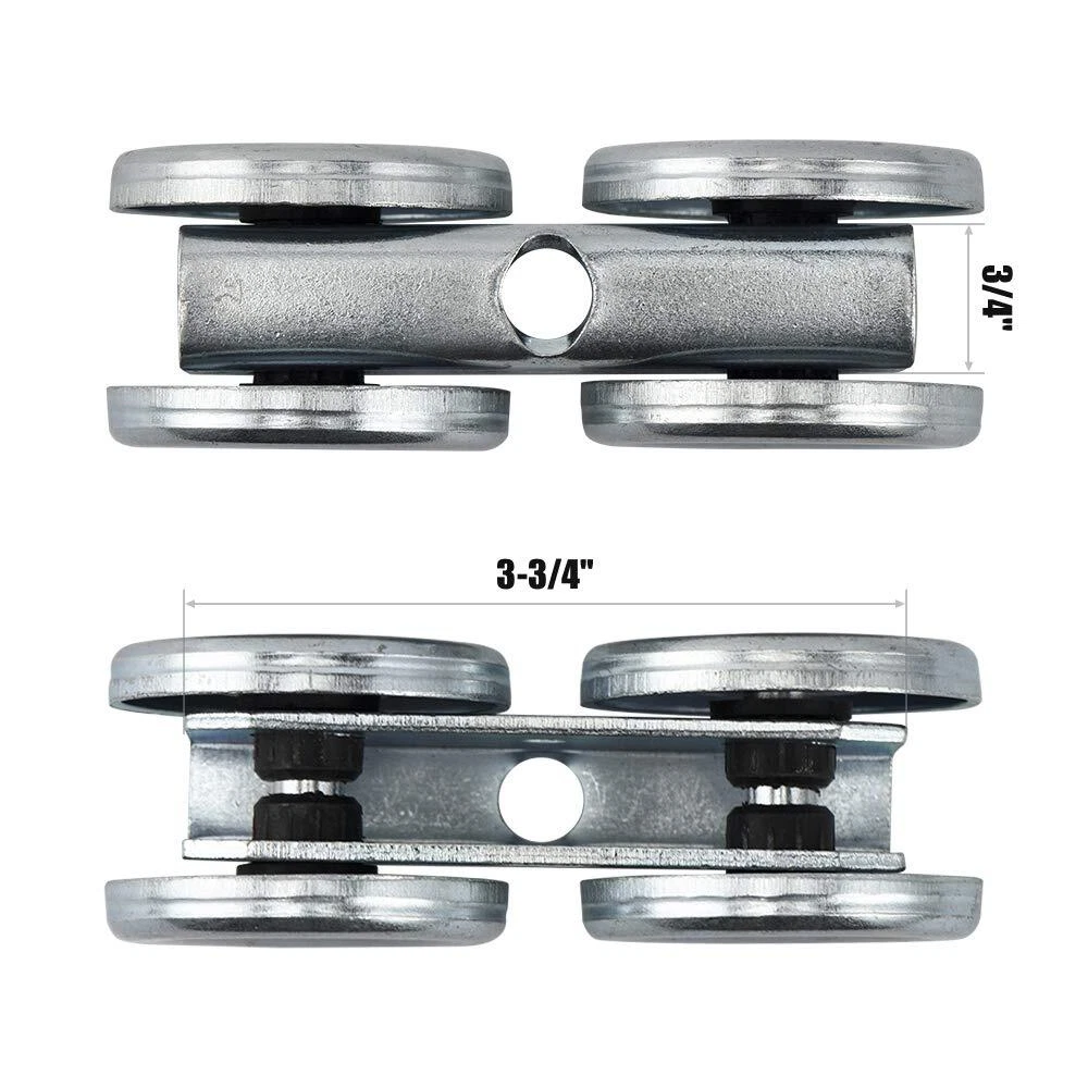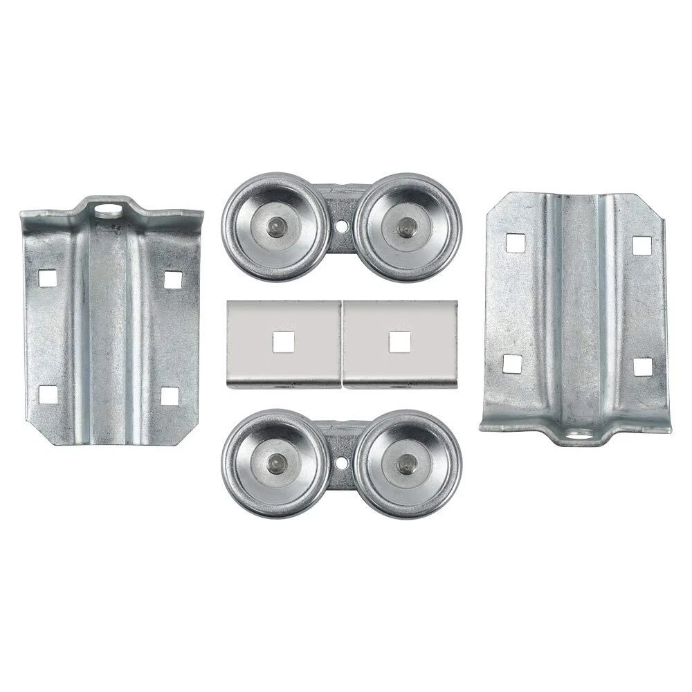 Box rail hanger kit is made of steel,zinc-plated finish,durable, rust, weather resistance and long-lasting use 2 End caps and bolts for attaching door strap and self-lubricating derlin bearings,easy installation with mounting hardware and instructions included Adjustable both laterally and vertically, The sturdy plates quickly mount to your door and the adjustment bolts are easy to adjust the drop of the door to ensure a good fit The BOX RAIL HANGER KIT is a full, all in one hardware kit for simple hanging, sliding doors. It will withstand out door extremes, a perfect application for garages ,sheds,wood sliding doorsand green houses. Use on wood frame sliding doors from 1-1/2" to 2" thick.Suitable for: Track size 2-1/4 In. x 1-3/4 In The box rail hanger kit consists of 2 sets,safe working load - 225 lb. per hanger