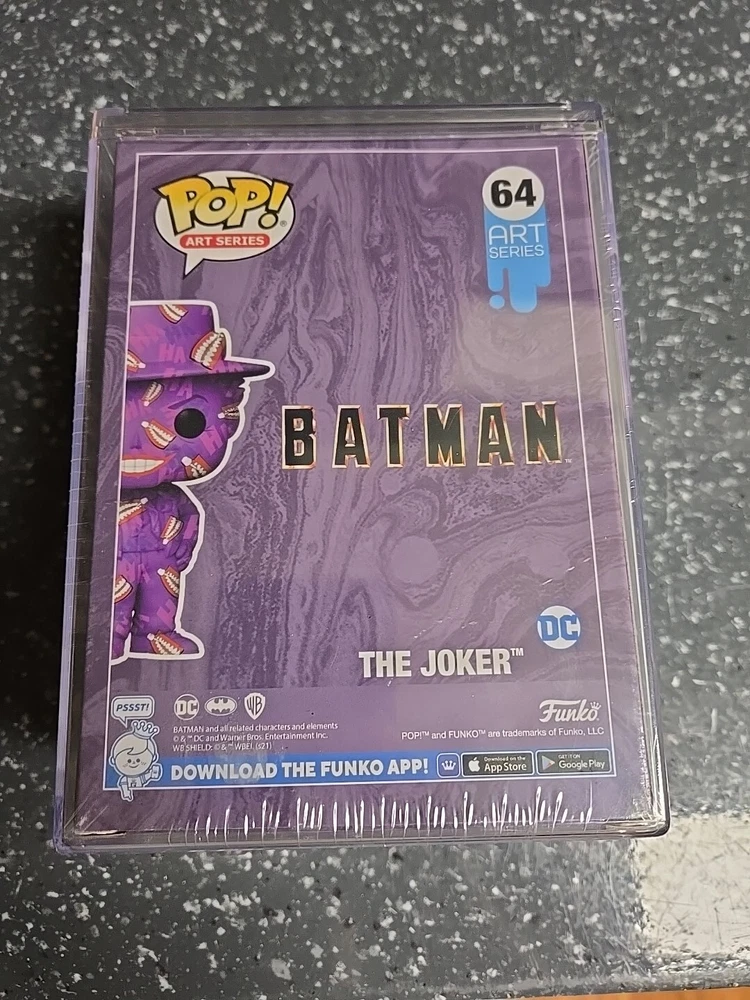 Character:The JokerSize:StandardMovie:The BatmanUPC:889698601030Sport:BoxingCustomized:NoType:Vinyl FigureVintage:NoModel:Funko PopCollection:Art SeriesBox Number:64Franchise:batmanProduct Line:Pop!Color:PurpleExclusive Event/Retailer:TargetCongtin13:889698601030Number in Pack:1Autographed:NoFeatures:Exclusive, Special Edition, With ProtectorMaterial:VinylBrand:Funko