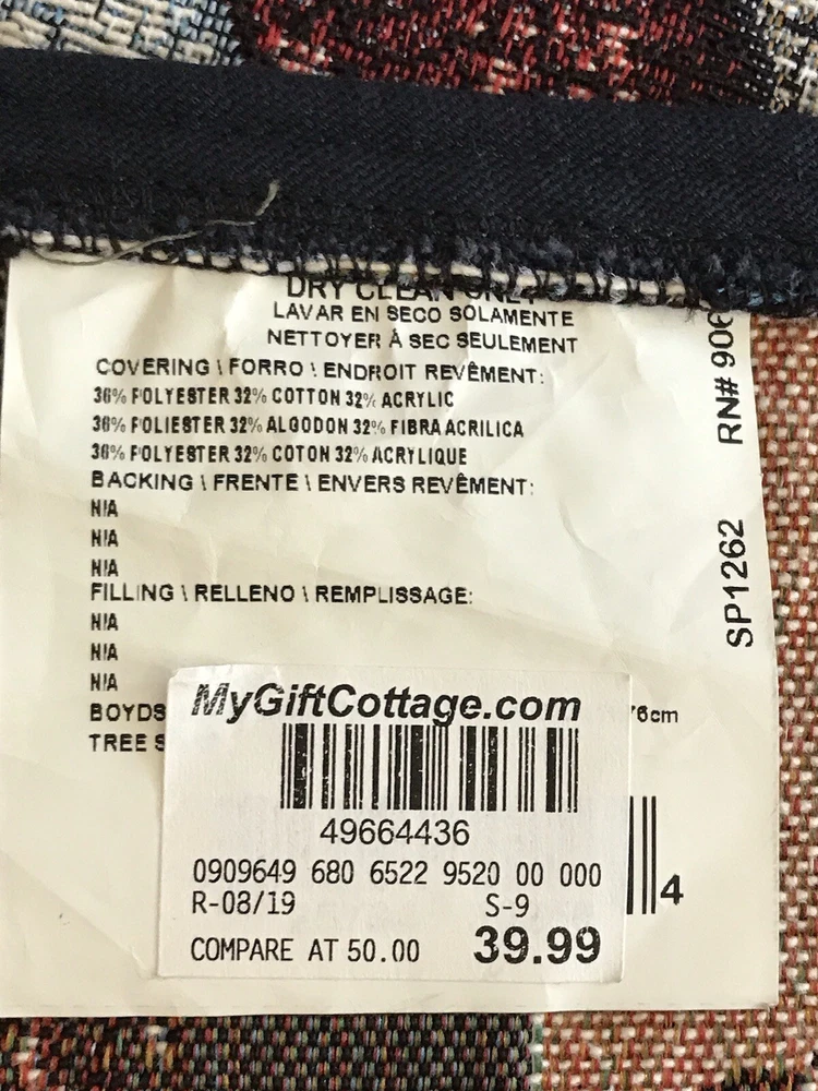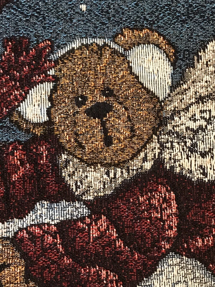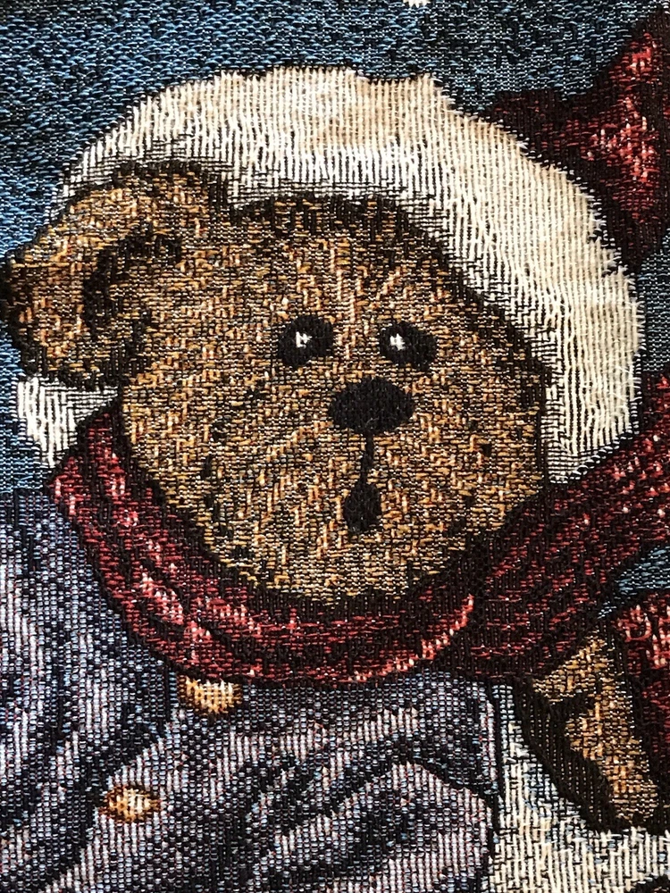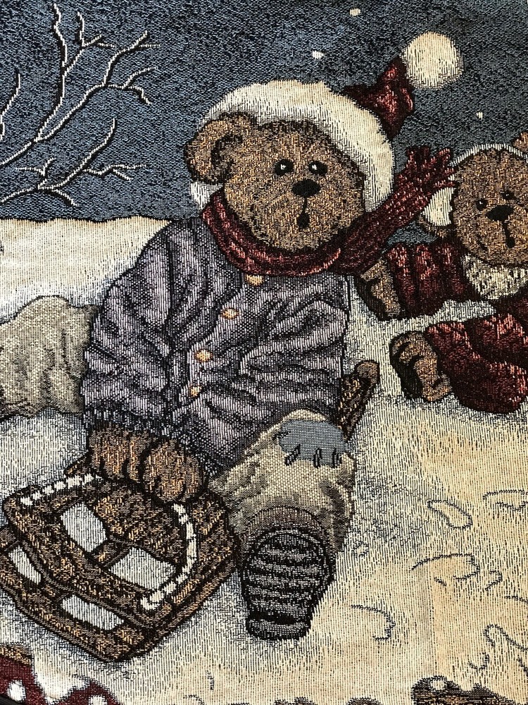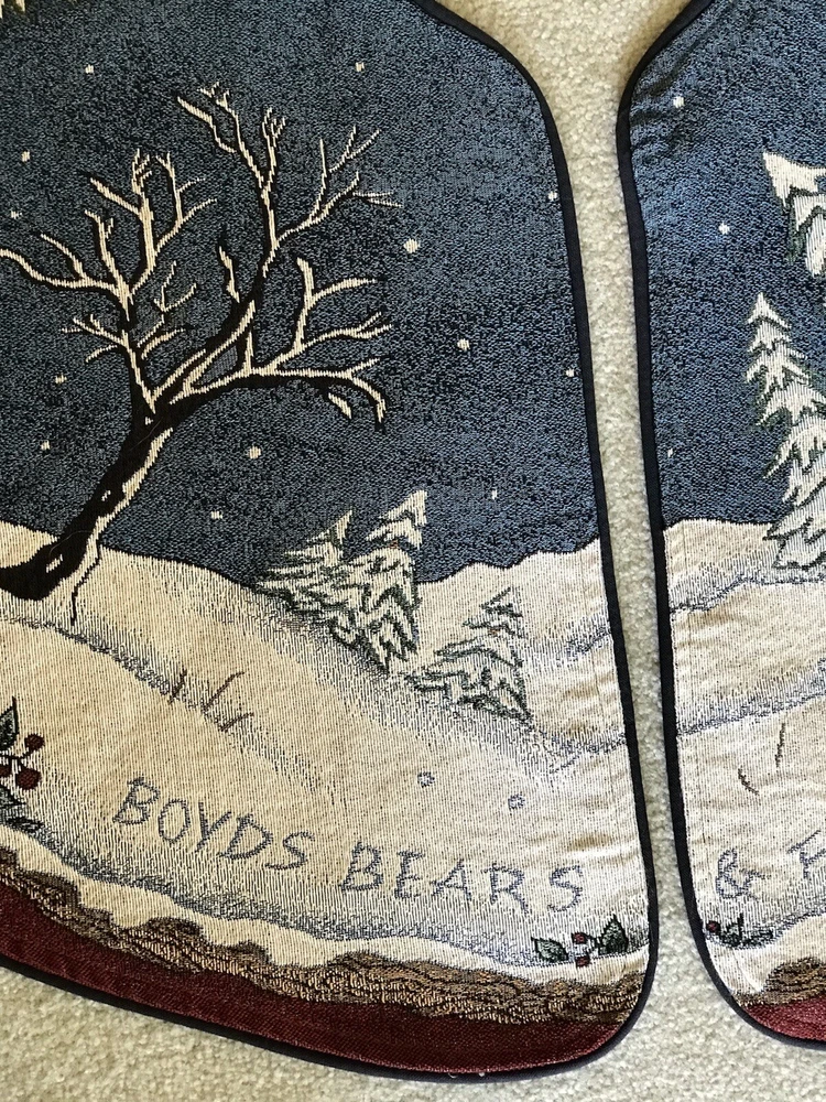 *** Very minimal sown repair on the edge piping. See the last 2 photos for the example. Very slight. Barely noticeable. **** The Boyds Bears Tapestry Christmas Tree Skirt featuring the scene "Enjoy the Ride" with snow sledding, is a large circle-shaped decor made of polyester, cotton, and acrylic materials. This multicolor tree skirt by Boyds Bears is perfect for holiday celebrations, adding a festive touch to your Christmas tree. The tapestry design and holiday theme make it a charming addition to your seasonal décor, while the high-quality materials ensure durability and longevity in your home. In a smoke free home.