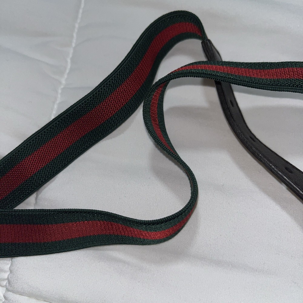 The product is a Gucci Baby belt designed for boys in size M. It features a green and red color scheme, giving it a vibrant and stylish look. This belt is designed to add a touch of luxury and sophistication to a teen boy's outfit, making it a fashionable accessory for any occasion.