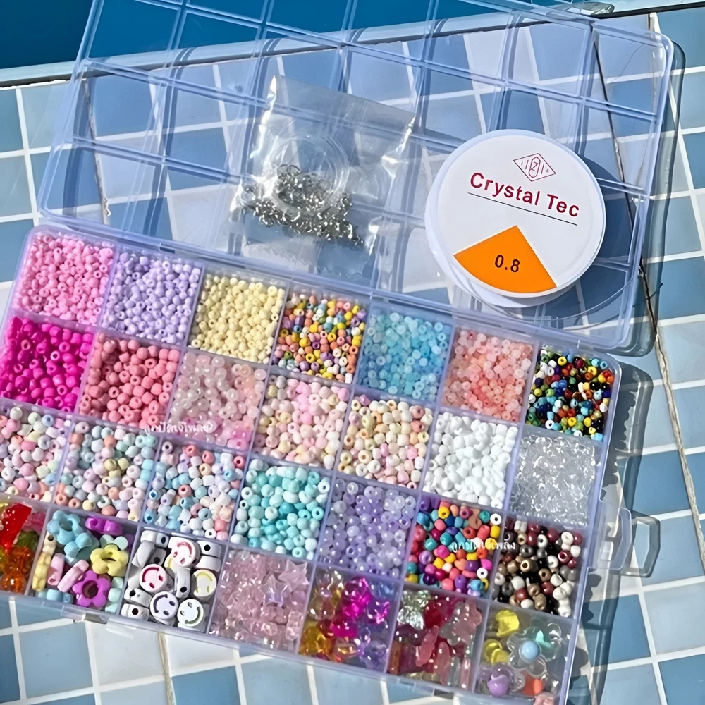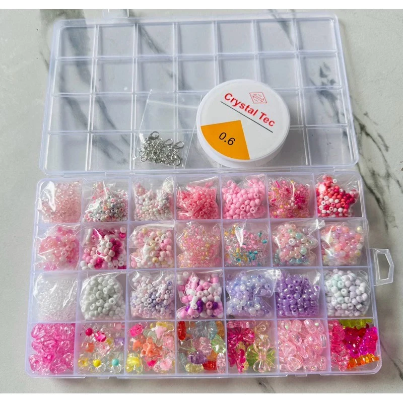 Duo Set Box – Includes Free Elastic Line & 5 Free Accessories – Ready to Ship! You will receive the colors as shown in the photos or Customizable upon request, as shown in the picture Get creative with this complete bead set, perfect for jewelry making or DIY craft projects. This set includes everything you need to start designing right away. What's Included: 1 Duo Set Box 14 Colored Beads (Packaged in individual 10g zip bags for easy pouring) 1 Pendant Tray (14 slots) 1 Elastic Band (Free!) 5 Free Accessories 5 Lobster Clasps (Crab Claws) 5 Chains 10 Stoppers You will receive exactly what you see in the cover first photo. or DIY Wax String Bracelet Kit 9hole – Candle String Set with Beads, Pendants & Box ( shown in the first picture ) or Customizable upon request, as shown in the picture. String Bracelet Kit 10hole set – free DIY elastic string & Box Perfect for beginners and DIY jewelry lovers, this compact set includes everything you need to start creating your own beautiful pieces. What’s Included: 1 S-Set Box with 10 compartments 7 Colored Beads (Packed in individual ziplock bags – 10g each) 1 Pendant with 3 slots 1 DIY Elastic Line Note: Beads are packed in individual zip-lock bags for customers to pour into the box themselves.