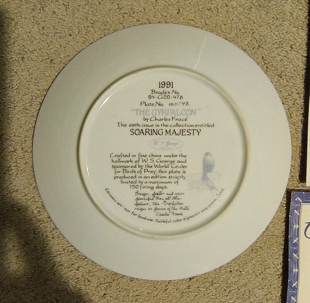 $ 5.19Bradford Exchange Peregrine Falcon Soaring Majesty Plate by Charles Frace 1991