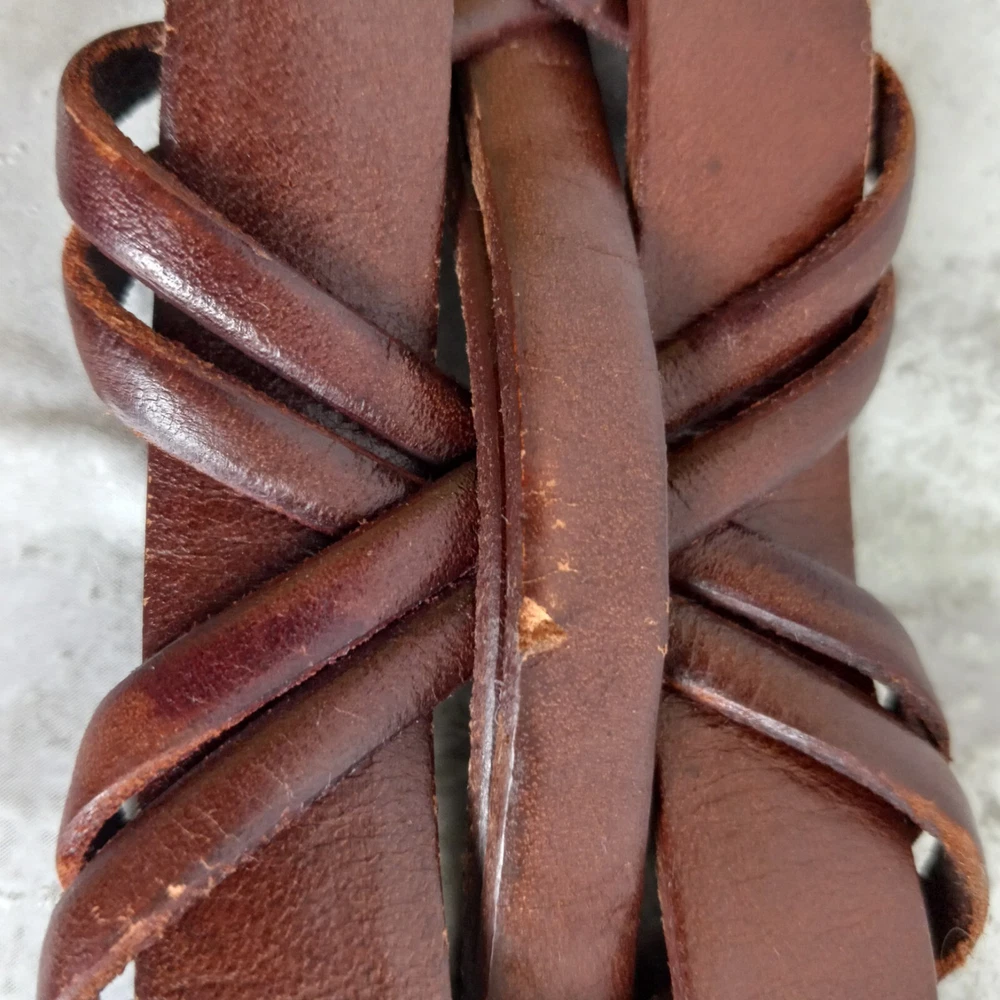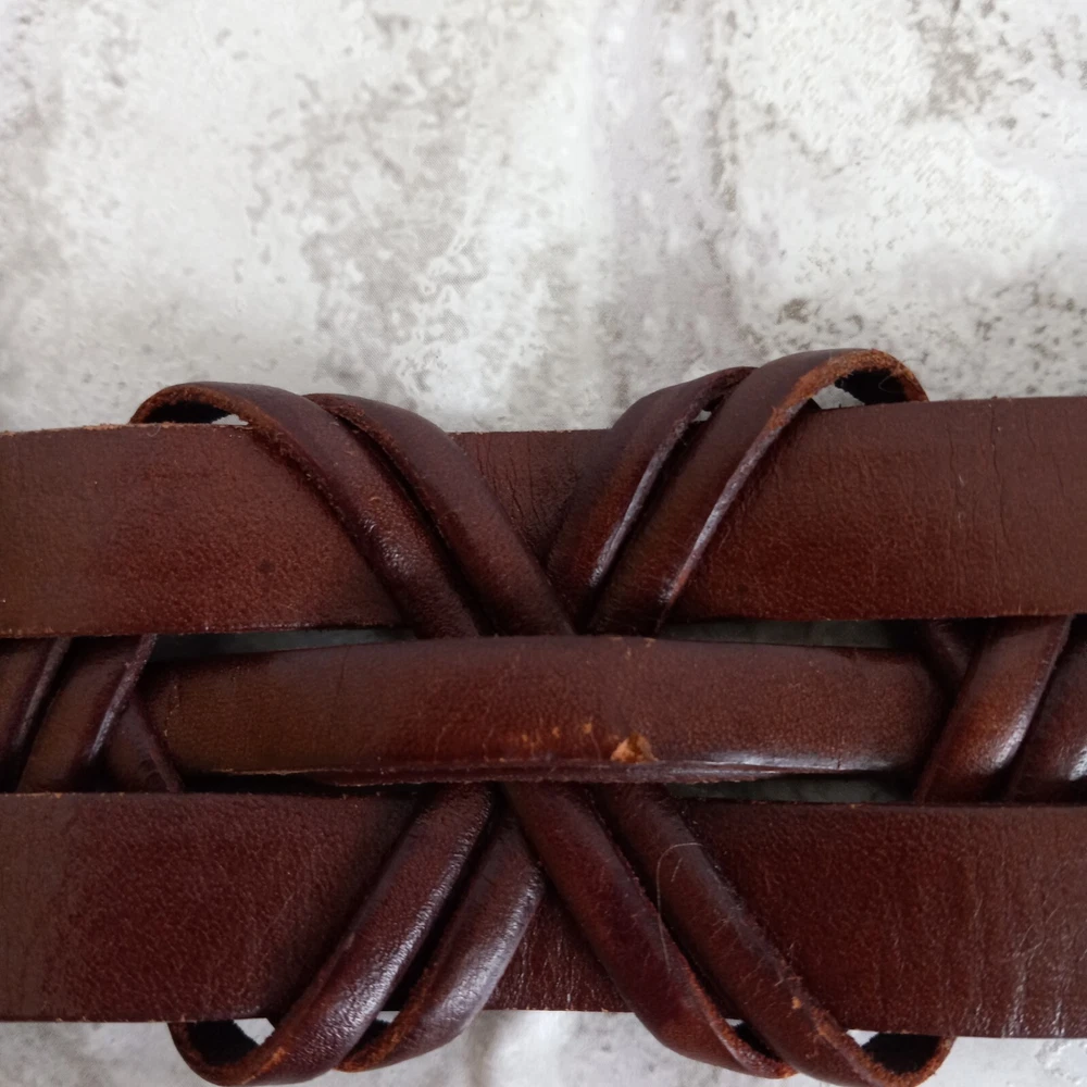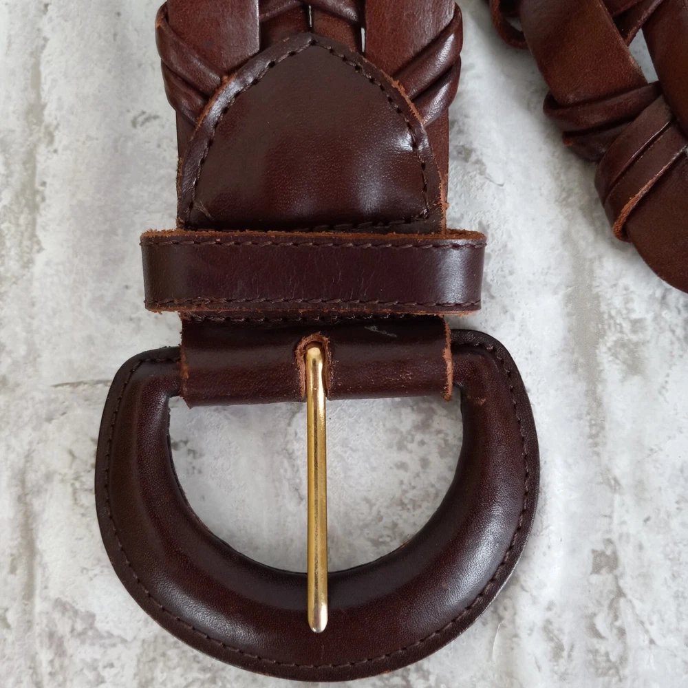 Embrace the spirit of the '70s with this women's large brown braided leather belt, designed to add a touch of retro charm to any outfit. The belt features an adjustable strap, ensuring a comfortable fit for waist sizes 36-38, and is adorned with a distinctive buckle that complements its bohemian flair. Crafted with quality leather and boasting a wide width for durability, this belt is a perfect accessory for those who love to make a statement. The festival, hippie, and peasant themes are seamlessly blended with a gypsy, Bohemian, and retro aesthetic, creating a piece that's not only stylish but also imbued with a sense of history. Each belt is handmade, guaranteeing uniqueness and a personal touch.