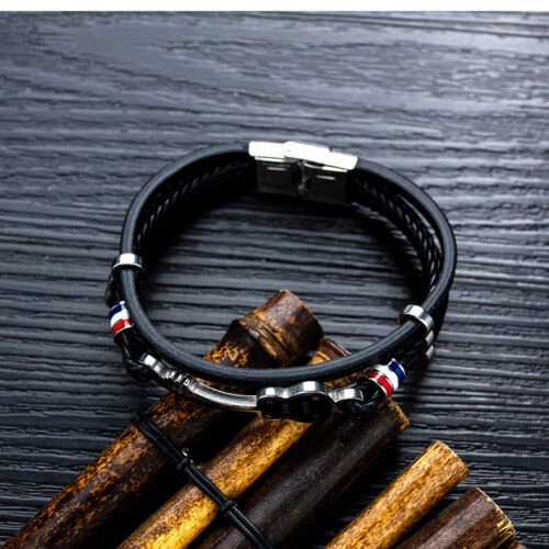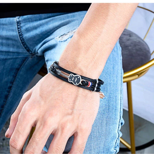 Brand:Unbrandedgtin13:Does not applyColor:BlackMaterial:LeatherClasp Type:Box/SnapStyle:Cuff, BangleMain Stone:Not ApplicableType:BraceletTheme:MusicMetal:Stainless SteelUPC:Does not applyMPN:Does not apply